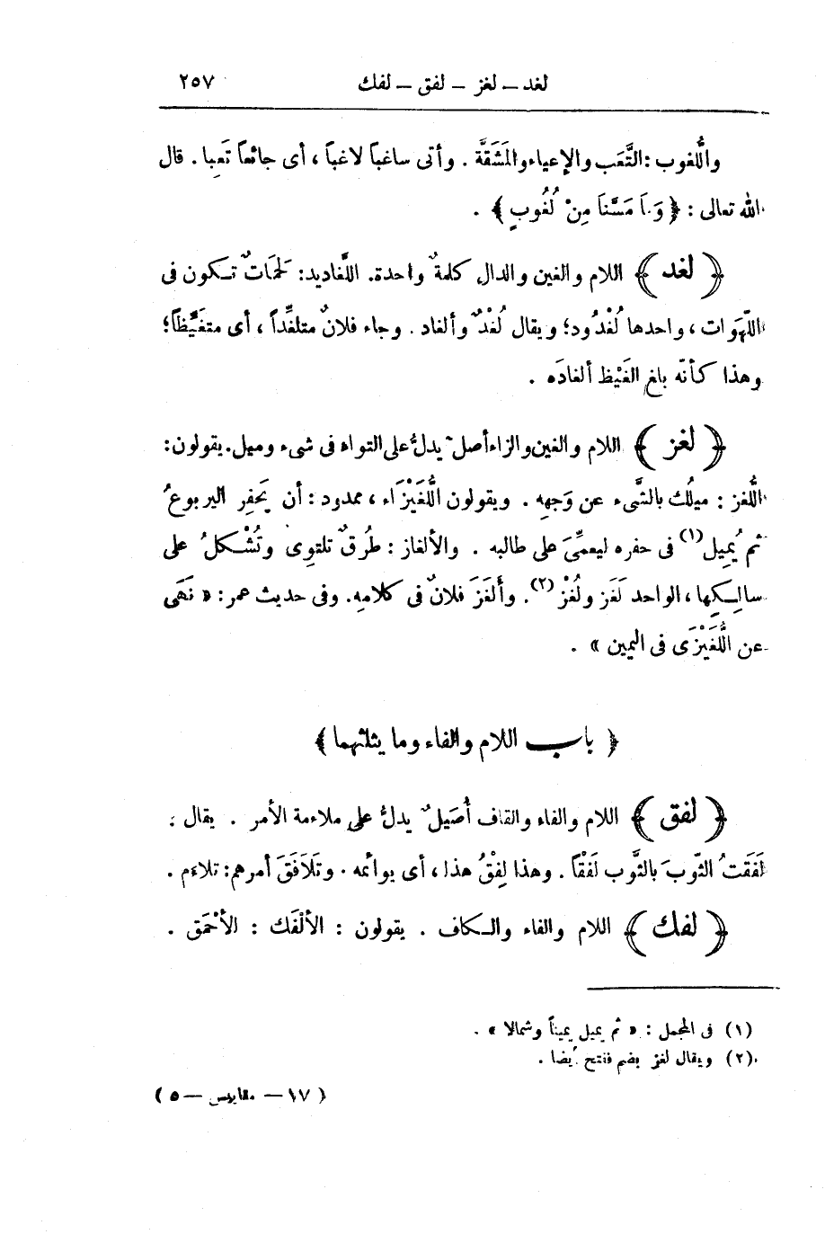 [بَابُ اللَّامِ وَالْفَاءِ وَمَا يَثْلُثُهُمَا]