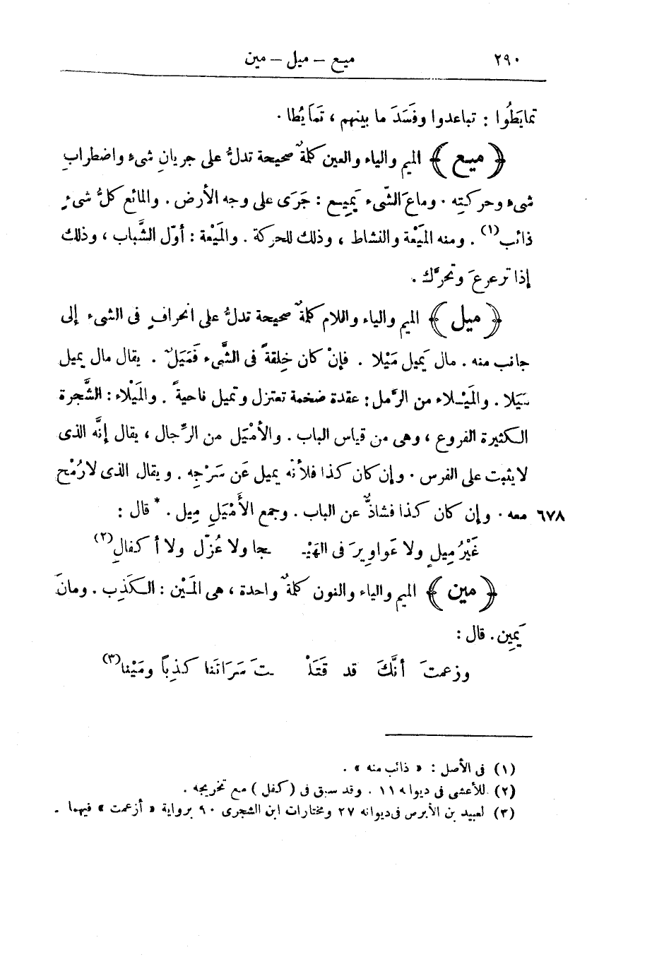 (مَيَنَ) الْمِيمُ وَالْيَاءُ وَالنُّونُ كَلِمَةٌ وَاحِدَةٌ، هِيَ الْمَيْنُ: الْكَذِبُ. وَمَانَ يَمِينُ. قَالَ:
