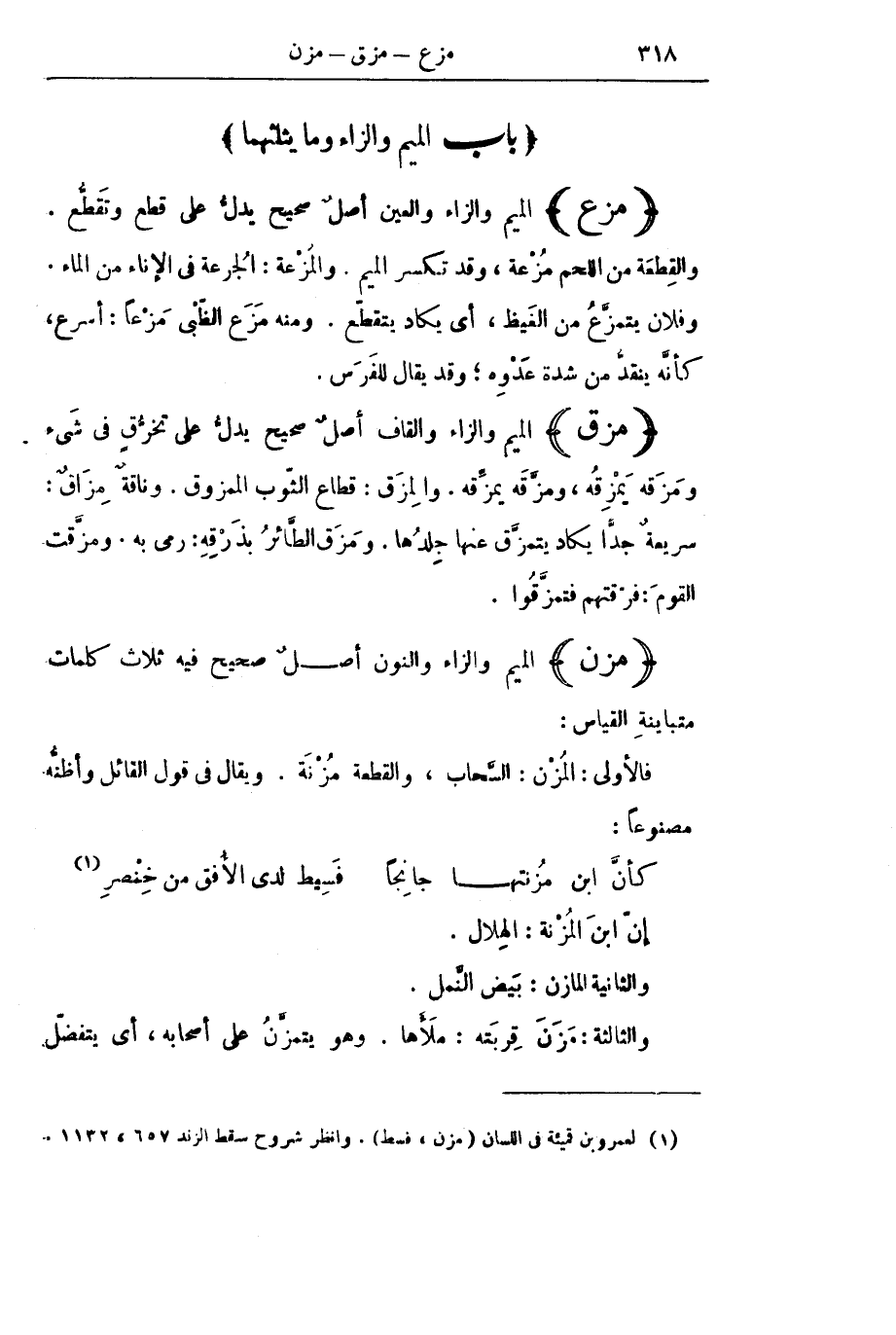 [بَابُ الْمِيمِ وَالزَّاءِ وَمَا يَثْلُثُهُمَا]