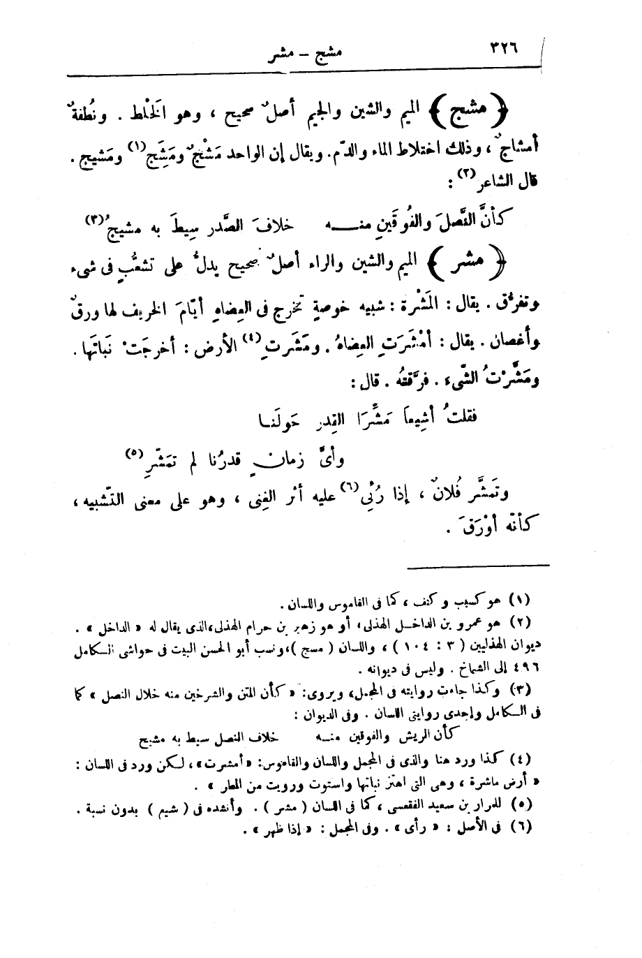 (مَشَجَ) الْمِيمُ وَالشِّينُ وَالْجِيمُ أَصْلٌ صَحِيحٌ، وَهُوَ الْخَلْطُ. وَنُطْفَةٌ أَمْشَاجٌ، وَذَلِكَ اخْتِلَاطُ الْمَاءِ وَالدَّمِ. وَيُقَالُ إِنَّ الْوَاحِدَ مَشَجَ وَمَشَِجَ وَمَشِيجٌ. قَالَ الشَّاعِرُ: