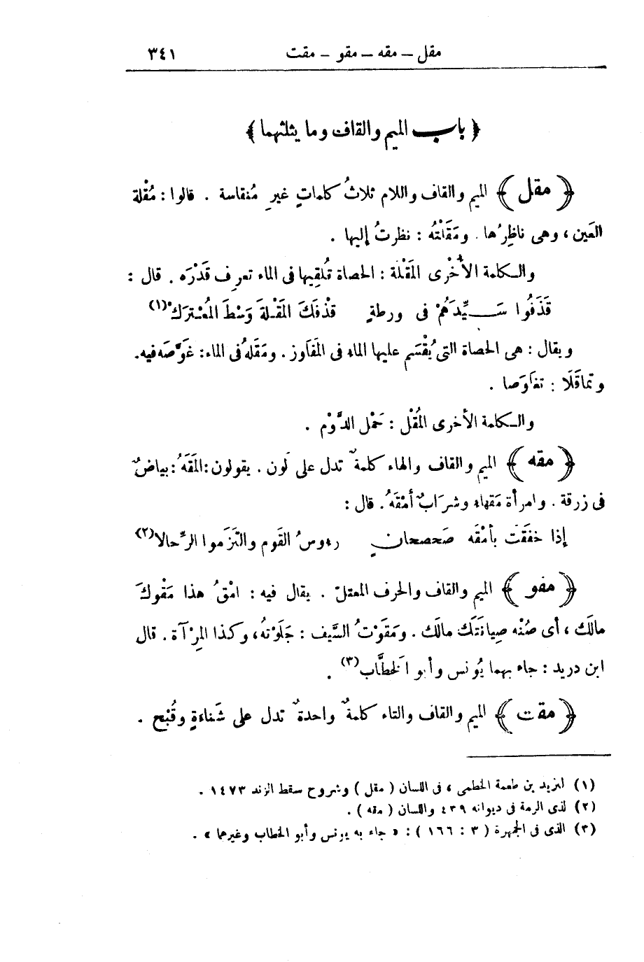 [بَابُ الْمِيمِ وَالْقَافِ وَمَا يَثْلُثُهُمَا]
