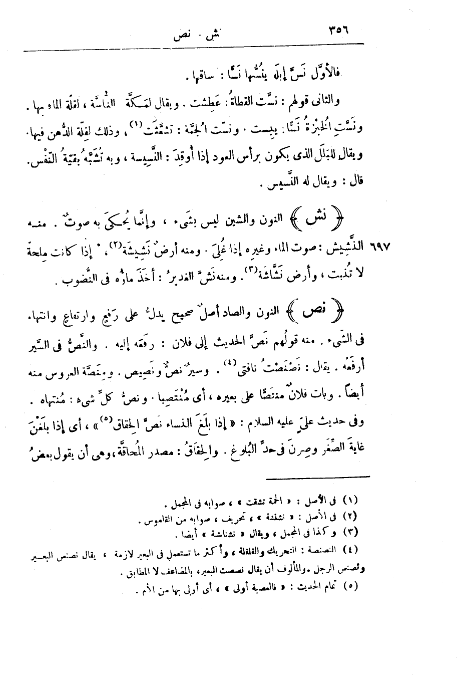 فَالْأَوَّلُ نَسَّ إِبِلَهُ يَنُسُّهَا نَسًّا: سَاقَهَا.