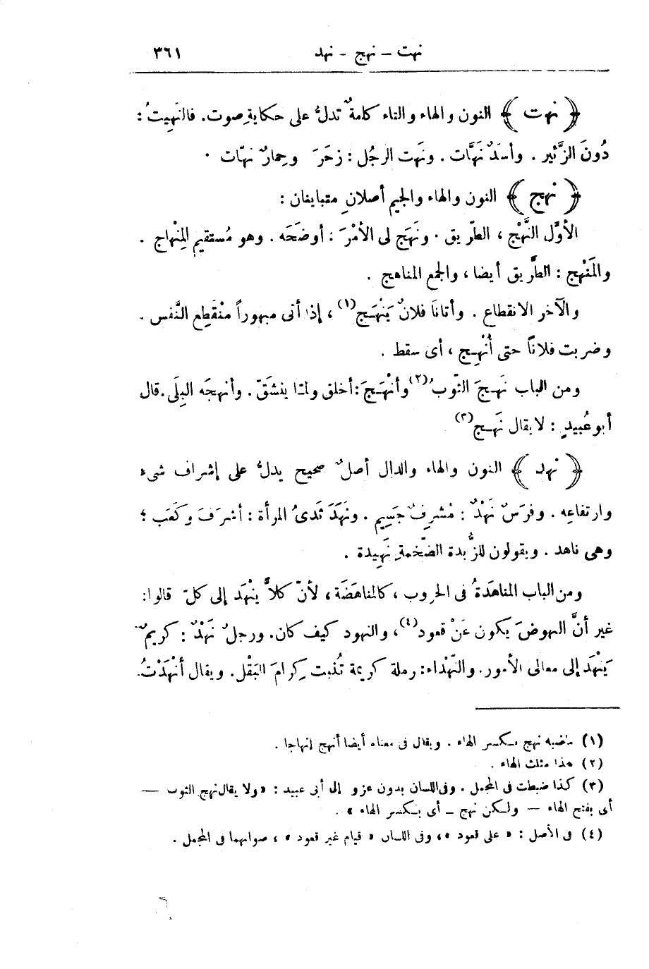 (نَهَتْ) النُّونُ وَالْهَاءُ وَالتَّاءُ كَلِمَةٌ تَدُلُّ عَلَى حِكَايَةِ صَوْتٍ. فَالنَّهِيتُ: دُونَ الزَّئِيرِ. وَأَسَدٌّ نَهَّاتٌ. وَنَهَتَ الرَّجُلُ: زَحَرَ. وَحِمَارٌ نَهَّاتٌ.