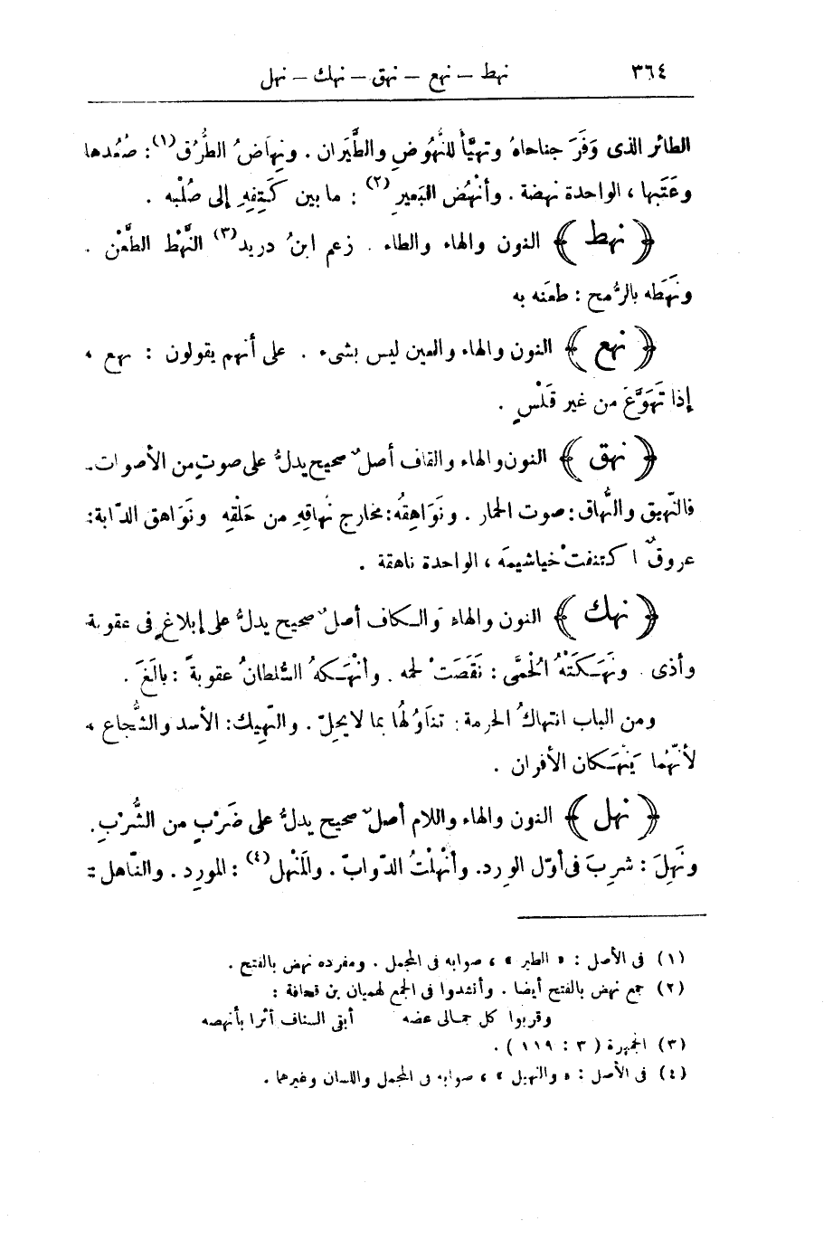 (نَهَطَ) النُّونُ وَالْهَاءُ وَالطَّاءُ. زَعَمَ ابْنُ دُرَيْدٍ النَّهْطُ الطَّعْنُ. وَنَهَطَهُ بِالرُّمْحِ: طَعَنَهُ بِهِ.