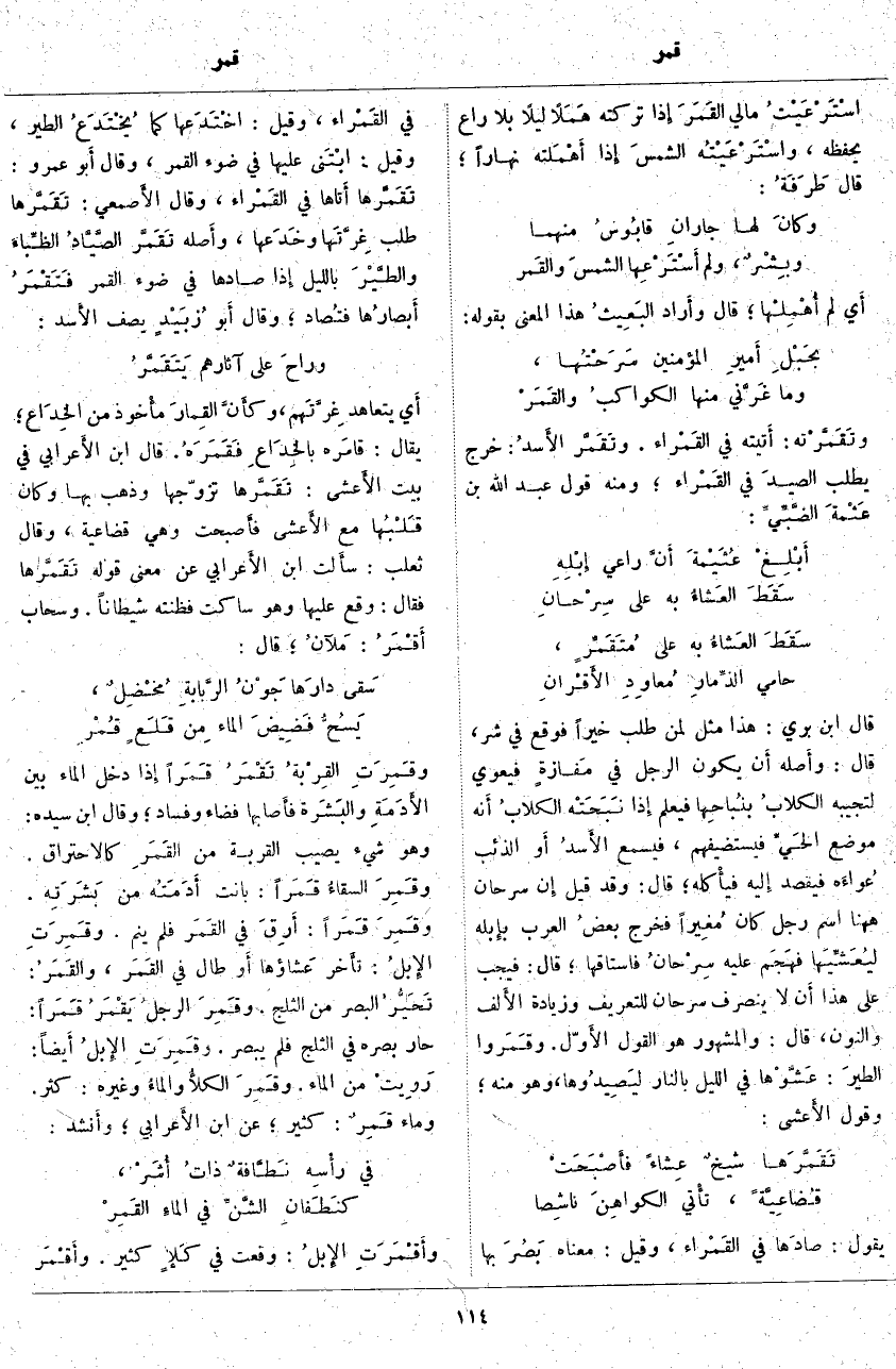 وتَقَمَّرْته: أَتيته فِي القَمْراء. وتَقَمَّر الأَسدُ: خَرَجَ يَطْلُبُ الصيدَ فِي القَمْراء؛ وَمِنْهُ قَوْلُ عَبْدِ اللَّهِ بْنِ عَثْمةَ الضَّبِّيِّ: