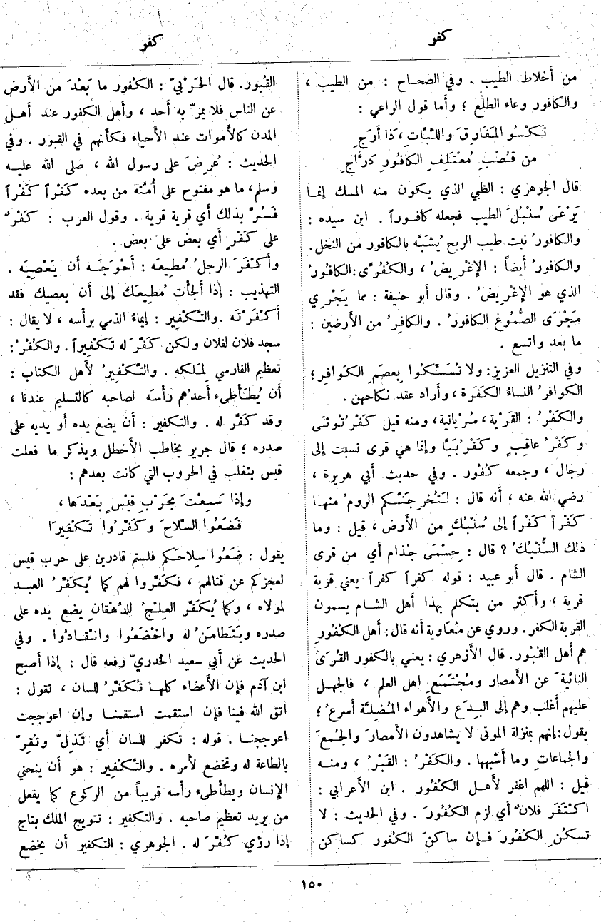 ؛ الكوافرُ النساءُ الكَفَرة، وأَراد عَقْدَ نِكَاحِهِنَّ. والكَفْرُ: القَرْية، سُرْيانية، ومنه قيل كَفرُ تُوثَى وكَفْرُ عاقِبٍ وكَفْرُ بَيَّا وإِنما هِيَ قُرَى نُسِبَتْ إِلى رِجَالٍ، وَجَمْعُهُ كُفُور. وَفِي حَدِيثِ أَبي هُرَيْرَةَ، رَضِيَ اللَّهُ عَنْهُ، أَنه قَالَ: لَتُخرِجَنَّكم الرومُ مِنْهَا كَفْراً كَفْراً إِلى سُنْبُكٍ مِنَ الأَرض، قِيلَ: وَمَا ذَلِكَ السُّنْبُكُ؟ قَالَ: حِسْمَى جُذام أَي مِنْ قُرَى الشَّامِ. قَالَ أَبو عُبَيْدٍ: قَوْلُهُ كَفْرًا كَفْرًا يَعْنِي قَرْيَةً قَرْيَةً، وأَكثر مَنْ يَتَكَلَّمُ بِهَذَا أَهل الشَّامِ يُسَمُّونَ الْقَرْيَةَ الْكَفْرَ. وَرُوِيَ عَنْ مُعَاوية أَنه قَالَ: أَهل الكُفُورِ هُمْ أَهل القُبُور. قَالَ الأَزهري: يَعْنِي بِالْكُفُورِ القُرَى النائيةَ عَنِ الأَمصار ومُجْتَمَعِ أَهْلِ الْعِلْمِ، فَالْجَهْلُ عَلَيْهِمْ أَغلب وَهُمْ إِلى البِدَع والأَهواء المُضِلَّة أَسرعُ؛ يَقُولُ: إِنهم بِمَنْزِلَةِ الْمَوْتَى لَا يُشَاهِدُونَ الأَمصارَ والجُمعَ والجماعاتِ وَمَا أَشبهها. والكَفْرُ: القَبْرُ، وَمِنْهُ قِيلَ: اللَّهُمَّ اغْفِرْ لأَهل الكُفُور. ابْنُ الأَعرابي: اكْتَفَر فلانٌ أَي لَزِمَ الكُفُورَ. وَفِي الْحَدِيثِ: