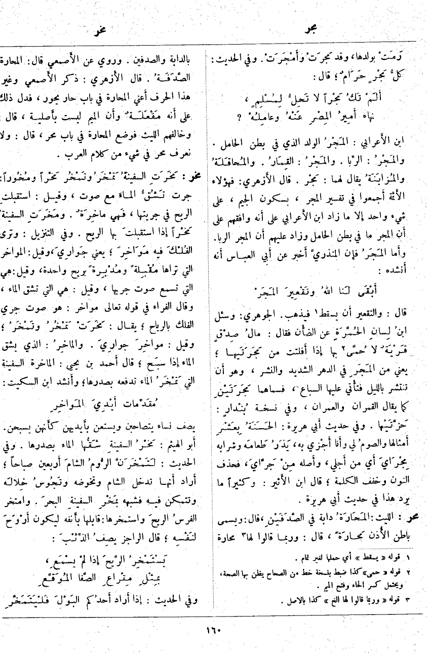 قَالَ: وَالتَّقْعِيرُ أَن يَسْقُطَ «6» فَيَذْهَبَ. الْجَوْهَرِيُّ: وَسُئِلَ ابنُ لِسانِ الحُمَّرَةِ عَنِ الضأْن فَقَالَ: مالُ صِدْقٍ قَرْيَةٌ لَا حُمَّى «7» بِهَا إِذا أَفلتت مِنْ مَجَرَتَيها؛ يَعْنِي مِنَ المَجَرِ فِي الدَّهْرِ الشَّدِيدِ وَالنَّشَرَ، وَهُوَ أَن تَنْتَشِرَ بِاللَّيْلِ فتأْتي عَلَيْهَا السِّبَاعُ، فَسَمَّاهُمَا مَجَرَتَيْنِ كَمَا يُقَالُ الْقَمَرَانِ وَالْعَمْرَانِ، وَفِي نُسْخَةِ بُنْدارٍ: حَزَّتَيْها. وَفِي حَدِيثِ
