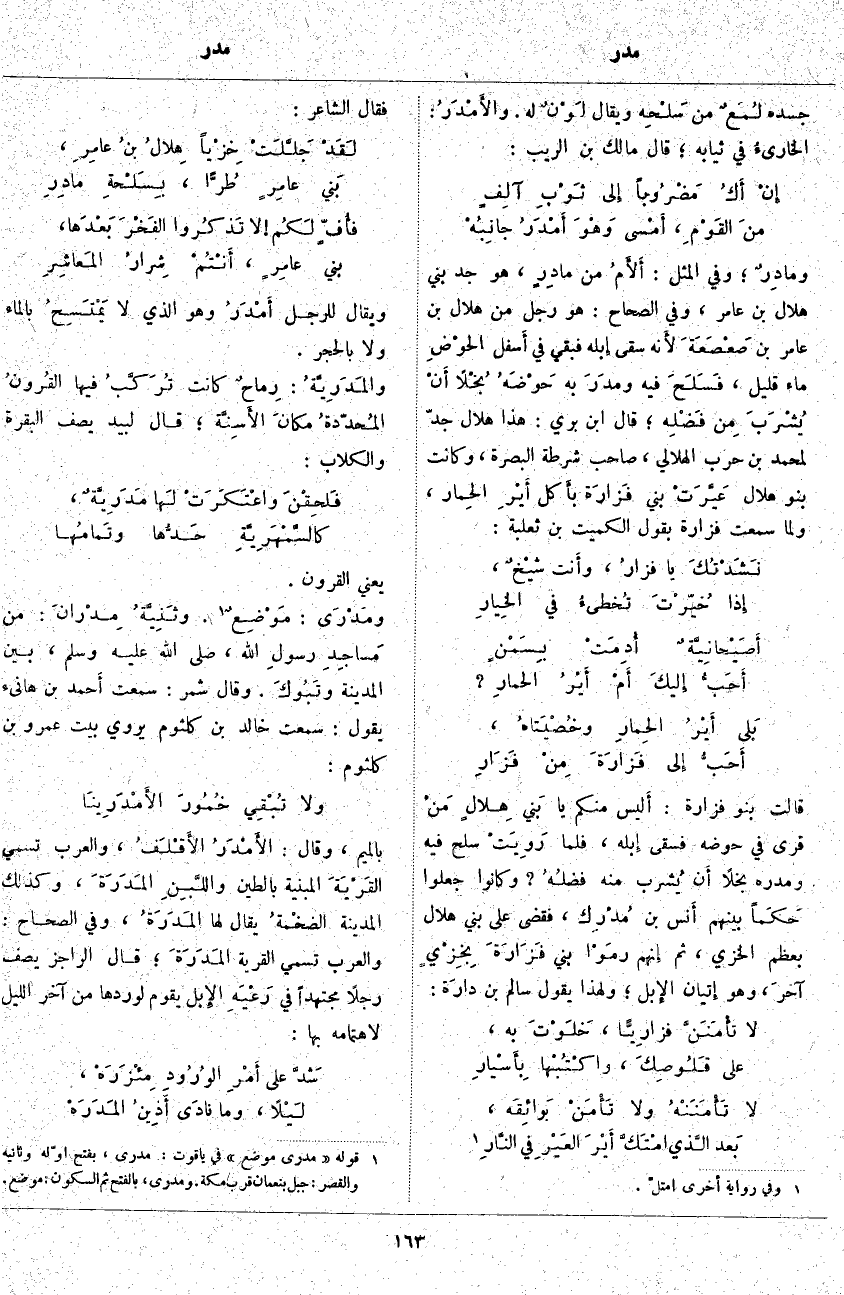 يَعْنِي الْقُرُونَ. ومَدْرَى: مَوْضِعٌ «2» وثَنِيَّةُ مِدْرانَ: مِنْ مَساجِدِ رسولِ اللَّهِ، صَلَّى اللَّهُ عَلَيْهِ وَسَلَّمَ، بَيْنَ الْمَدِينَةِ وتَبُوكَ. وَقَالَ شَمِرٌ: سَمِعْتُ أَحمد بْنَ هَانِئٍ يَقُولُ: سَمِعْتُ خَالِدَ بْنَ كُلْثُومٍ يَرْوِي بَيْتَ عَمْرِو بْنِ كُلْثُومٍ: