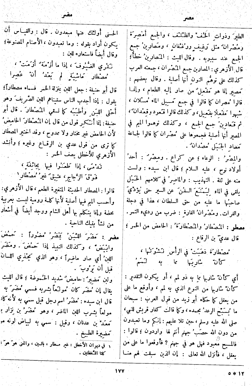 مصطر: المُصْطارُ والمُصْطارَةُ: الْحَامِضُ من الْخَمْرِ؛ قَالَ عَدِيُّ بْنُ الرَّقَّاعِ: