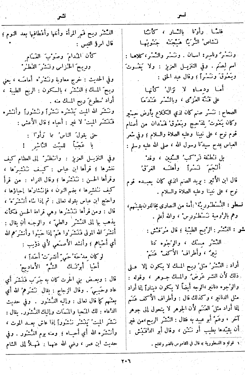 نشر: النَّشْر: الرِّيح الطيِّبة؛ قَالَ مُرَقِّش: