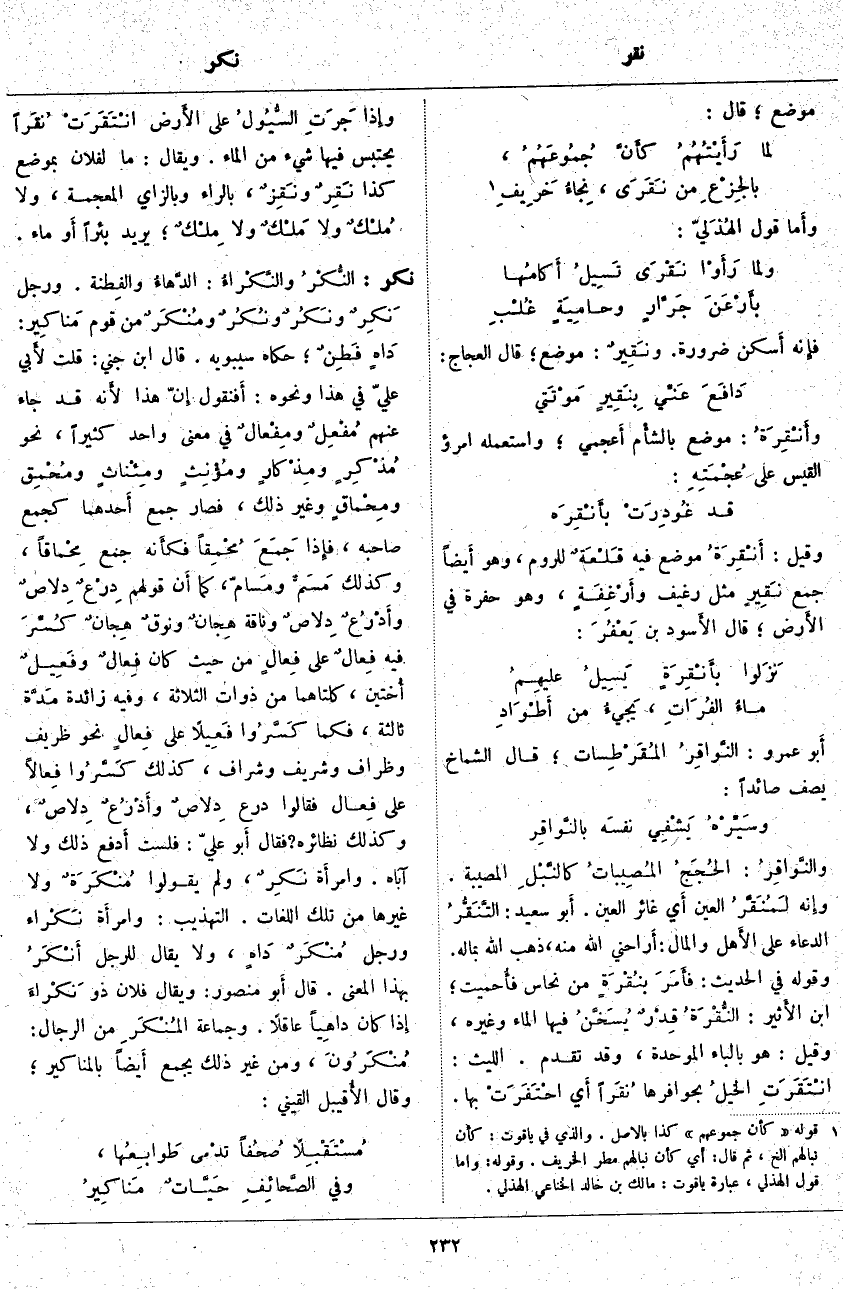 فإِنه أَسكن ضَرُورَةً. ونَقِيرٌ: مَوْضِعٌ؛ قَالَ الْعَجَّاجُ: