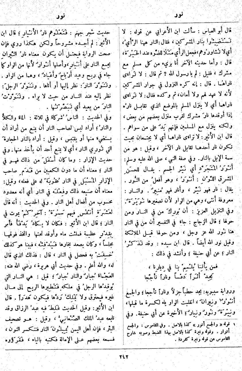 وَرِوَايَةُ سِيبَوَيْهِ: يَجِدُ حَطَبًا جَزْلًا وَنَارًا تأَججا؛ وَالْجَمْعَ أَنْوُرٌ «3» ونِيرانٌ، انْقَلَبَتِ الْوَاوُ يَاءً لِكَسْرَةِ مَا قَبْلَهَا، ونِيْرَةٌ ونُورٌ ونِيارٌ؛ الأَخيرة عَنْ أَبي حَنِيفَةَ. وَفِي حَدِيثِ شَجَرِ جَهَنَّمَ: