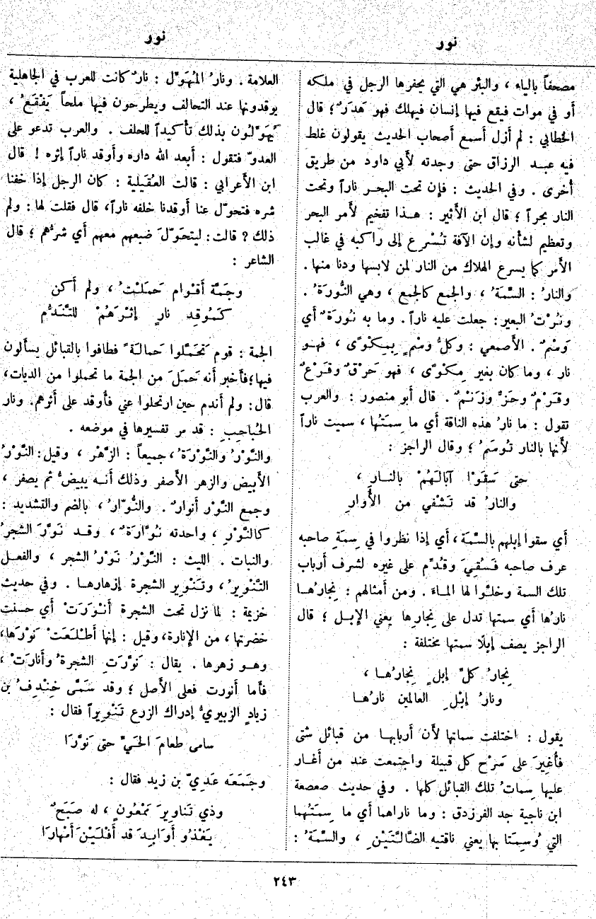 الْجَمَّةُ: قَوْمٌ تَحَمَّلوا حَمالَةً فَطَافُوا بِالْقَبَائِلِ يسأَلون فِيهَا؛ فأَخبر أَنه حَمَلَ مِنَ الْجَمَّةِ مَا تَحَمَّلُوا مِنَ الدِّيَاتِ، قَالَ: وَلَمْ أَندم حِينَ ارْتَحَلُوا عَنِّي فأُوقد عَلَى أَثرهم. وَنَارُ الحُباحِبِ: قَدْ مَرَّ تَفْسِيرُهَا فِي مَوْضِعِهِ. والنَّوْرُ والنَّوْرَةُ، جَمِيعًا: الزَّهْر، وَقِيلَ: النَّوْرُ الأَبيض وَالزَّهْرُ الأَصفر وَذَلِكَ أَنه يبيضُّ ثُمَّ يَصْفَرُّ، وَجَمْعُ النَّوْر أَنوارٌ. والنُّوّارُ، بِالضَّمِّ وَالتَّشْدِيدِ: كالنَّوْرِ، وَاحِدَتُهُ نُوَّارَةٌ، وَقَدْ نَوَّرَ الشجرُ وَالنَّبَاتُ. اللَّيْثُ: النَّوْرُ نَوْرُ الشَّجَرِ، وَالْفِعْلُ التَّنْوِيرُ، وتَنْوِير الشَّجَرَةِ إِزهارها. وَفِي حَدِيثِ