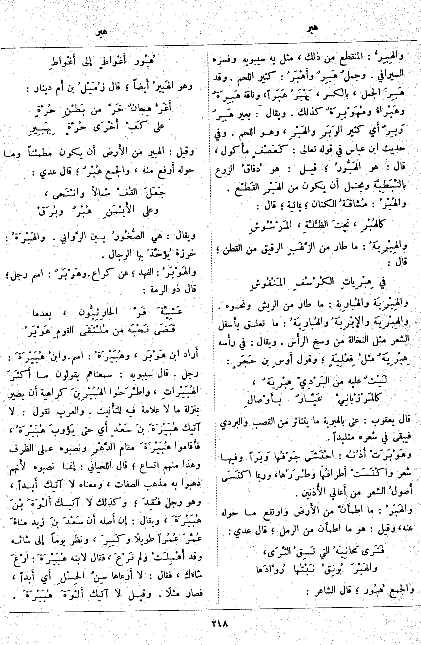 وَالْجَمْعُ هُبُور؛ قَالَ الْشَّاعِرُ: