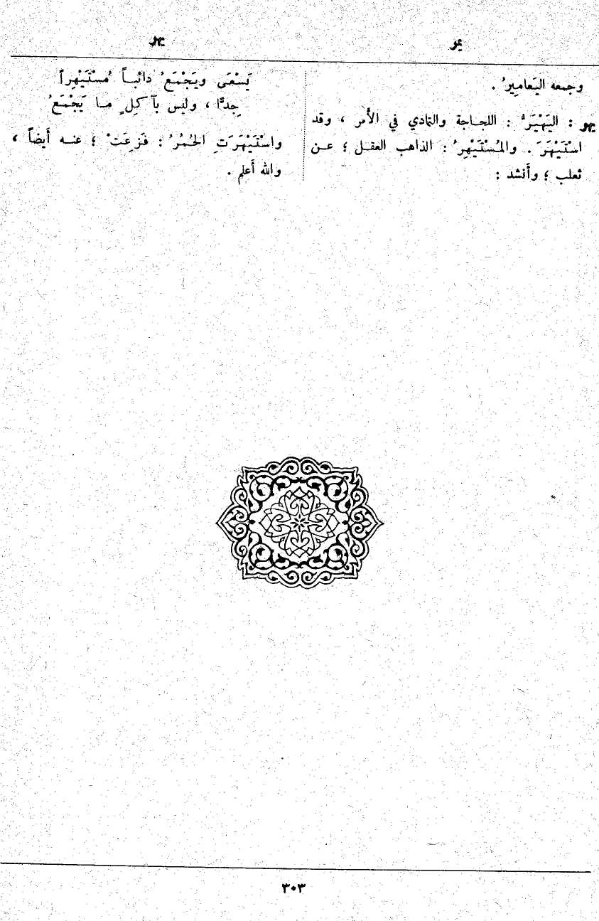 يَهُرُّ: اليَهْيَرُّ: اللَّجَاجَةُ وَالتَّمَادِي فِي الأَمر، وَقَدِ اسْتَيْهَرَ. والمُسْتَيْهِرُ: الذَّاهِبُ الْعَقْلِ؛ عَنْ ثَعْلَبٍ؛ وأَنشد:
