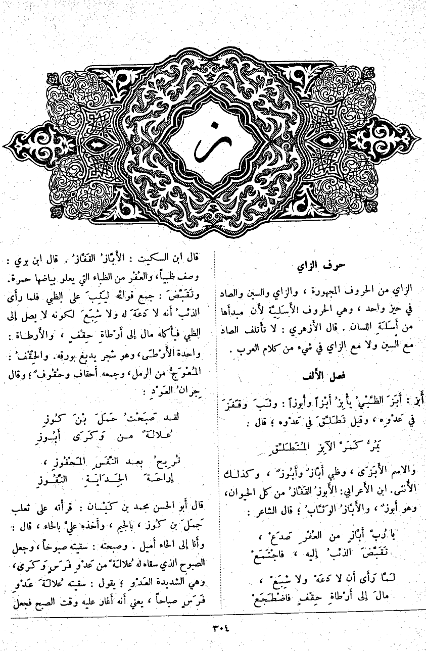 ز: الزَّايُ مِنَ الْحُرُوفِ الْمَجْهُورَةِ، وَالزَّايُ وَالسِّينُ وَالصَّادُ فِي حَيِّزٍ وَاحِدٍ، وَهِيَ الْحُرُوفُ الأَسَلِيَّة لأَن مبدأَها مِنْ أَسَلَةِ اللِّسَانِ. قَالَ الأَزهري: لَا تأْتلف الصَّادُ مَعَ السِّينِ وَلَا مَعَ الزَّايِ فِي شَيْءٍ مِنْ كَلَامِ الْعَرَبِ.