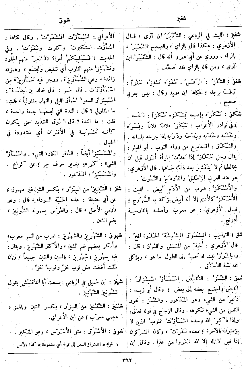 شهنز: ابْنُ شُمَيْلٍ فِي الرُّبَاعِيِّ: سَمِعْتُ أَبا الدُّقَيْشِ يَقُولُ للشُّونِيز الشّهْنِيز.