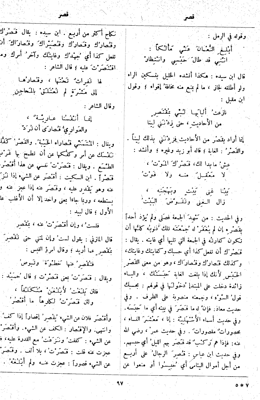 قَالَ الْمَازِنِيُّ: يَقُولُ لستُ وإِن لُمْتَنِي حَتَّى تُقْصِرَ بِي بمُقْصِرٍ عَمَّا أُريد؛ وَقَالَ امْرُؤُ الْقَيْسِ: