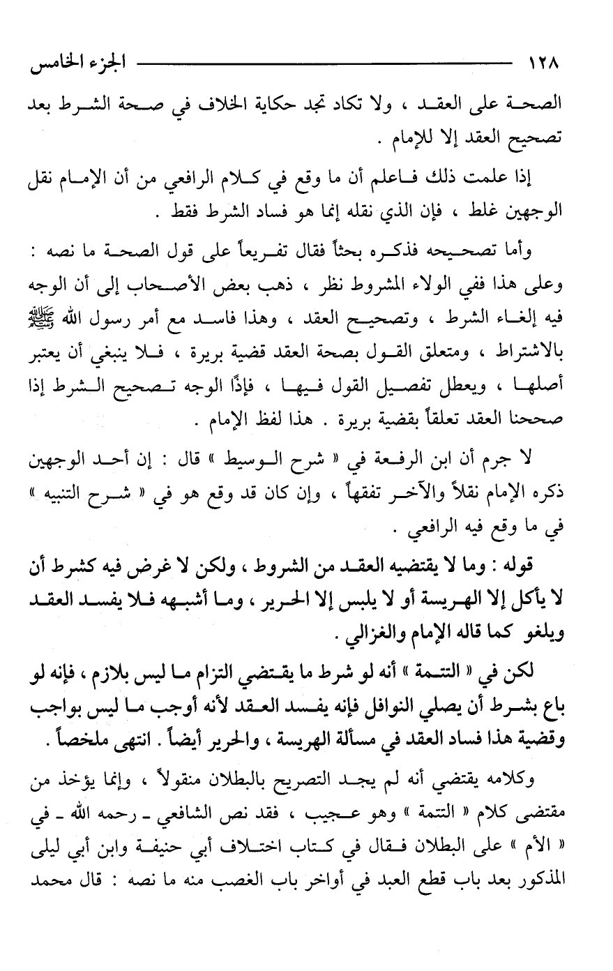 لكن في "التتمة" أنه لو شرط ما يقتضي التزام ما ليس بلازم، فإنه لو باع بشرط أن يصلي النوافل فإنه يفسد العقد لأنه أوجب ما ليس بواجب وقضية هذا فساد العقد في مسألة الهريسة، والحرير أيضًا. انتهى ملخصًا.