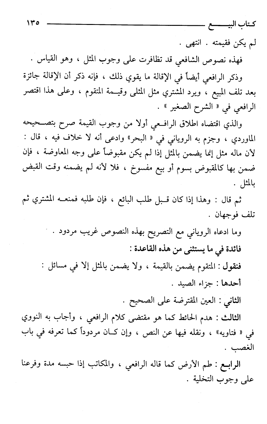 وذكر الرافعي أيضًا في الإقالة ما يقوي ذلك، فإنه ذكر أن الإقالة جائزة بعد تلف المبيع، ويرد المشتري مثل المثلى وقيمة المتقوم، وعلى هذا اقتصر الرافعي في "الشرح الصغير".