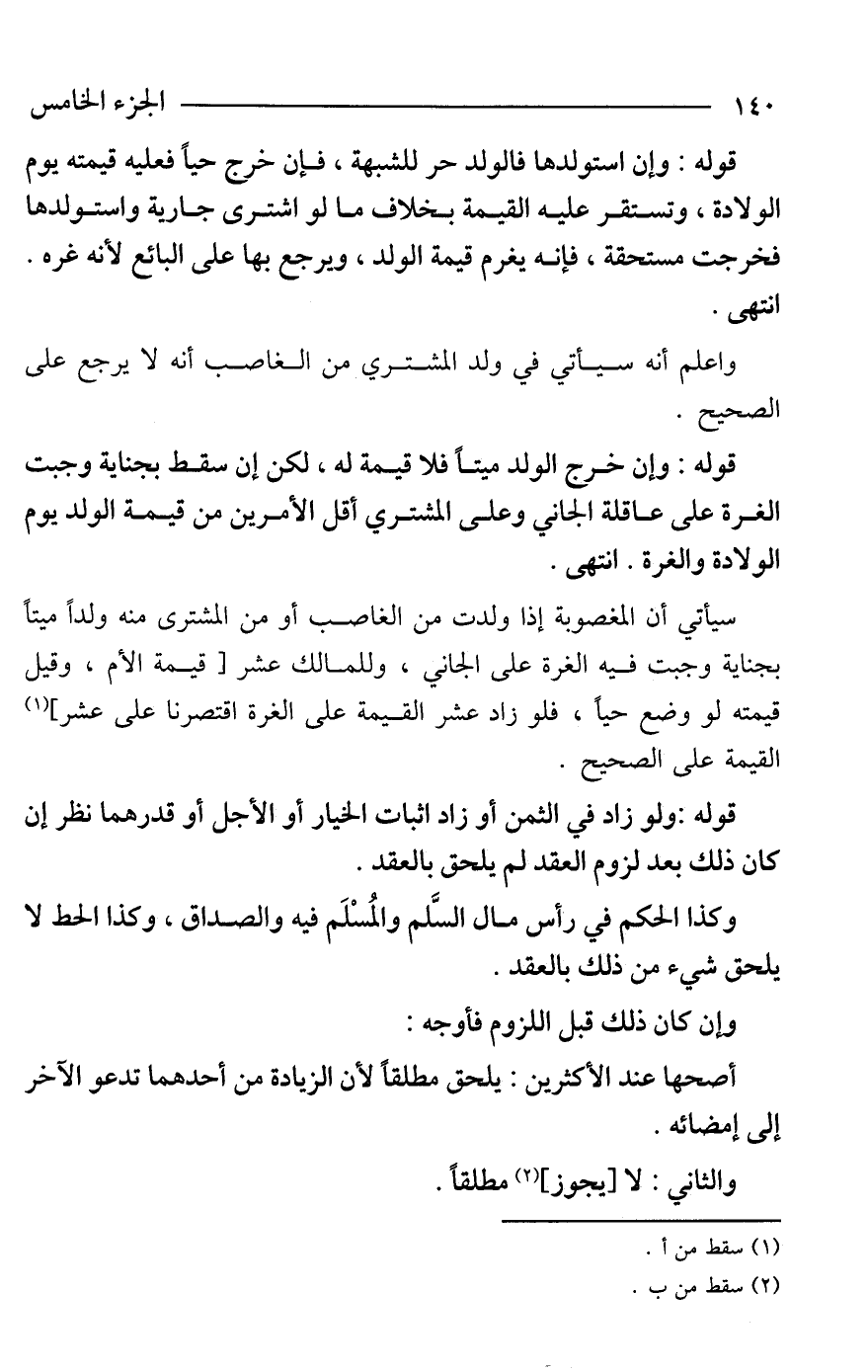 قوله: وإن خرج الولد ميتًا فلا قيمة له، لكن إن سقط بجناية وجبت الغرة على عاقلة الجاني وعلى المشتري أقل الأمرين من قيمة الولد يوم الولادة والغرة. انتهى.