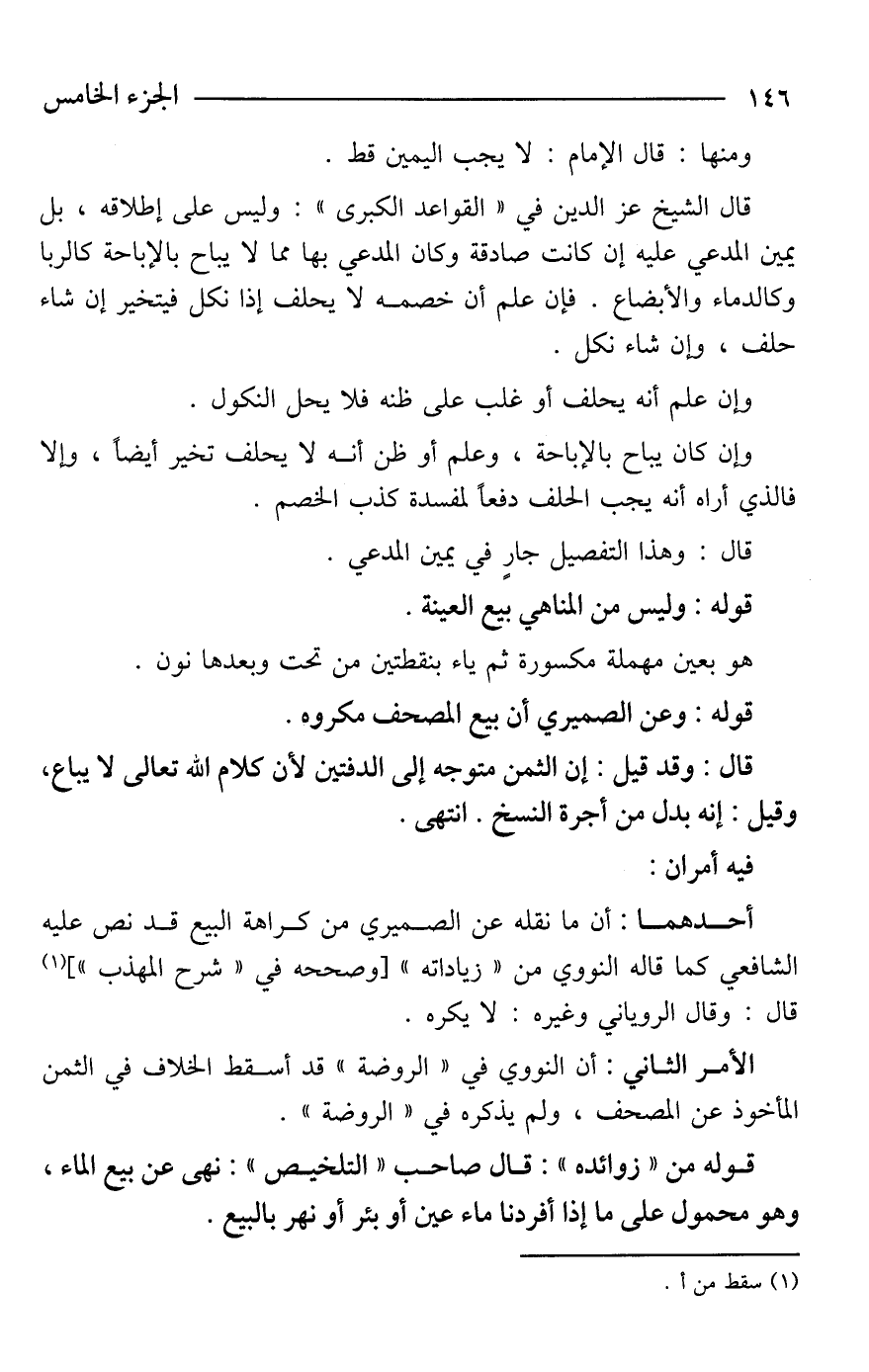 قال: وقد قيل: إن الثمن متوجه إلى الدفتين لأن كلام الله تعالى لا يباع، وقيل: إنه بدل من أجرة النسخ. انتهى.