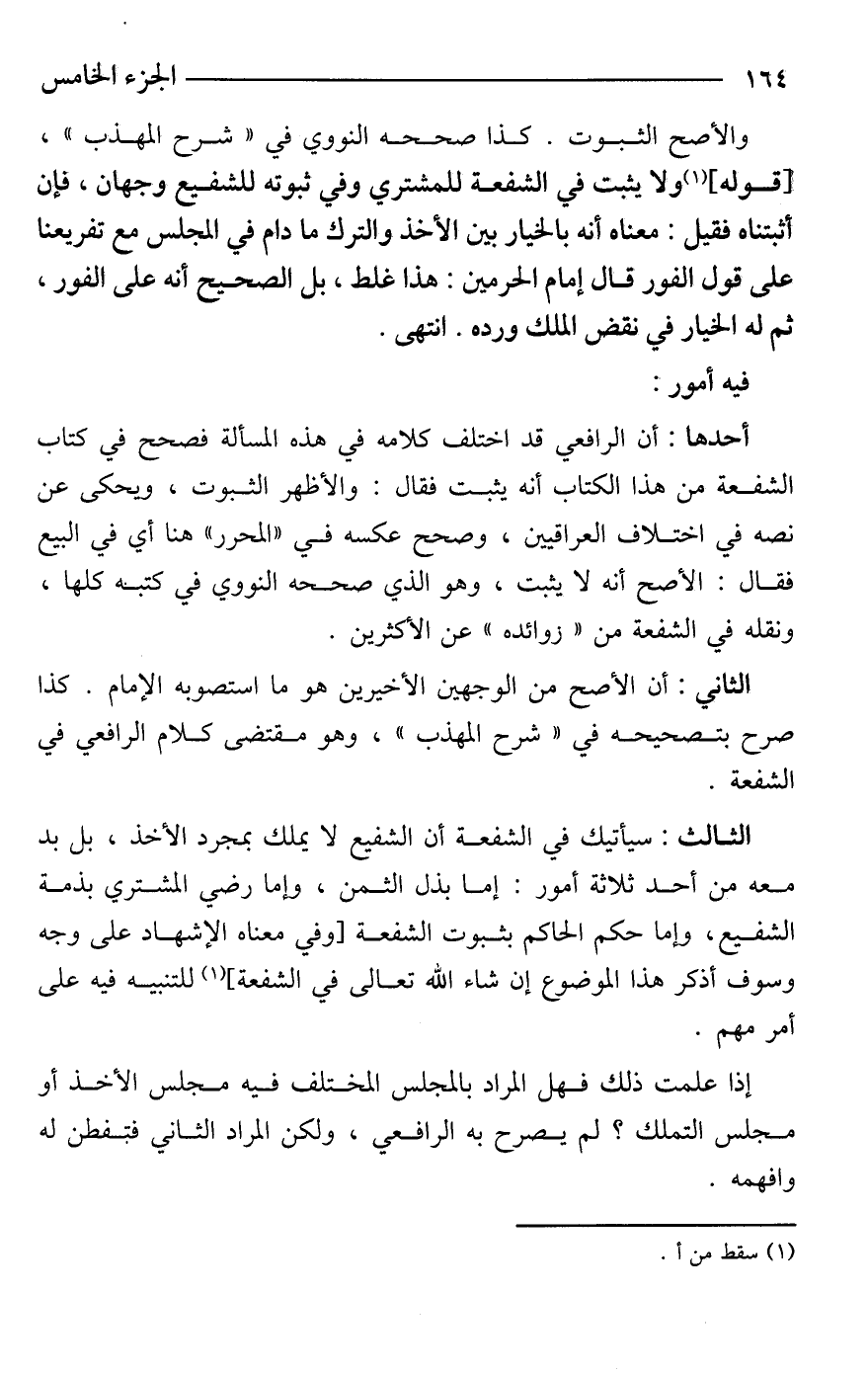 الثالث: سيأتيك في الشفعة أن الشفيع لا يملك بمجرد الأخذ، بل بد معه من أحد ثلاثة أمور: إما بذل الثمن، وإما رضي المشتري بذمة الشفيع، وإما حكم الحاكم بثبوت الشفعة [وفي معناه الإشهاد على وجه وسوف أذكر هذا الموضوع إن شاء الله تعالى في الشفعة] (¬1) للتنبيه فيه على أمر مهم.