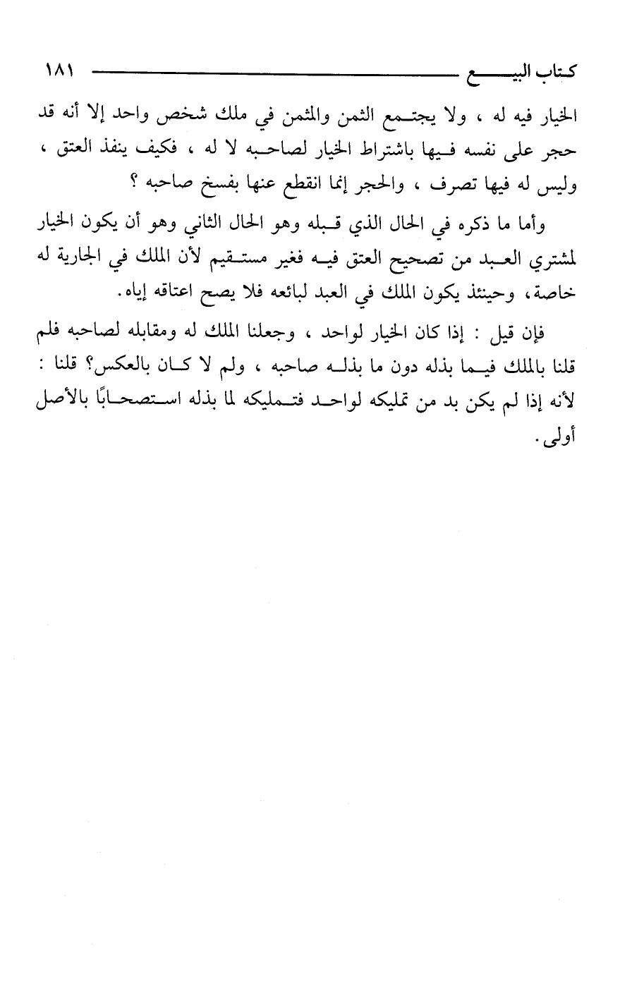 فإن قيل: إذا كان الخيار لواحد، وجعلنا الملك له ومقابله لصاحبه فلم قلنا بالملك فيما بذله دون ما بذله صاحبه، ولم لا كان بالعكس؟ قلنا: لأنه إذا لم يكن بد من تمليكه لواحد فتمليكه لما بذله استصحابًا بالأصل أولى.