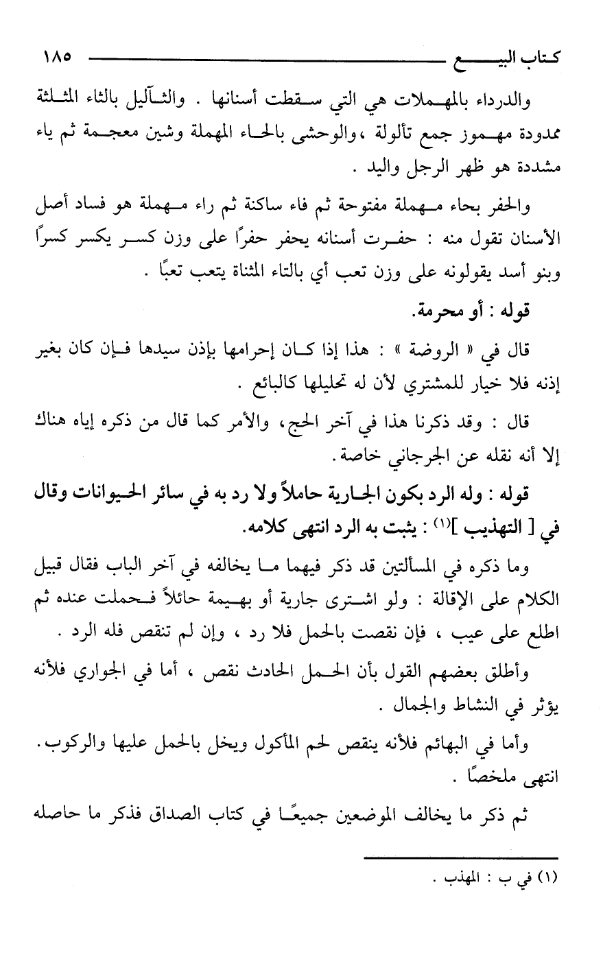 قوله: وله الرد بكون الجارية حاملًا ولا رد به في سائر الحيوانات وقال في [التهذيب] (¬1): يثبت به الرد انتهى كلامه.
