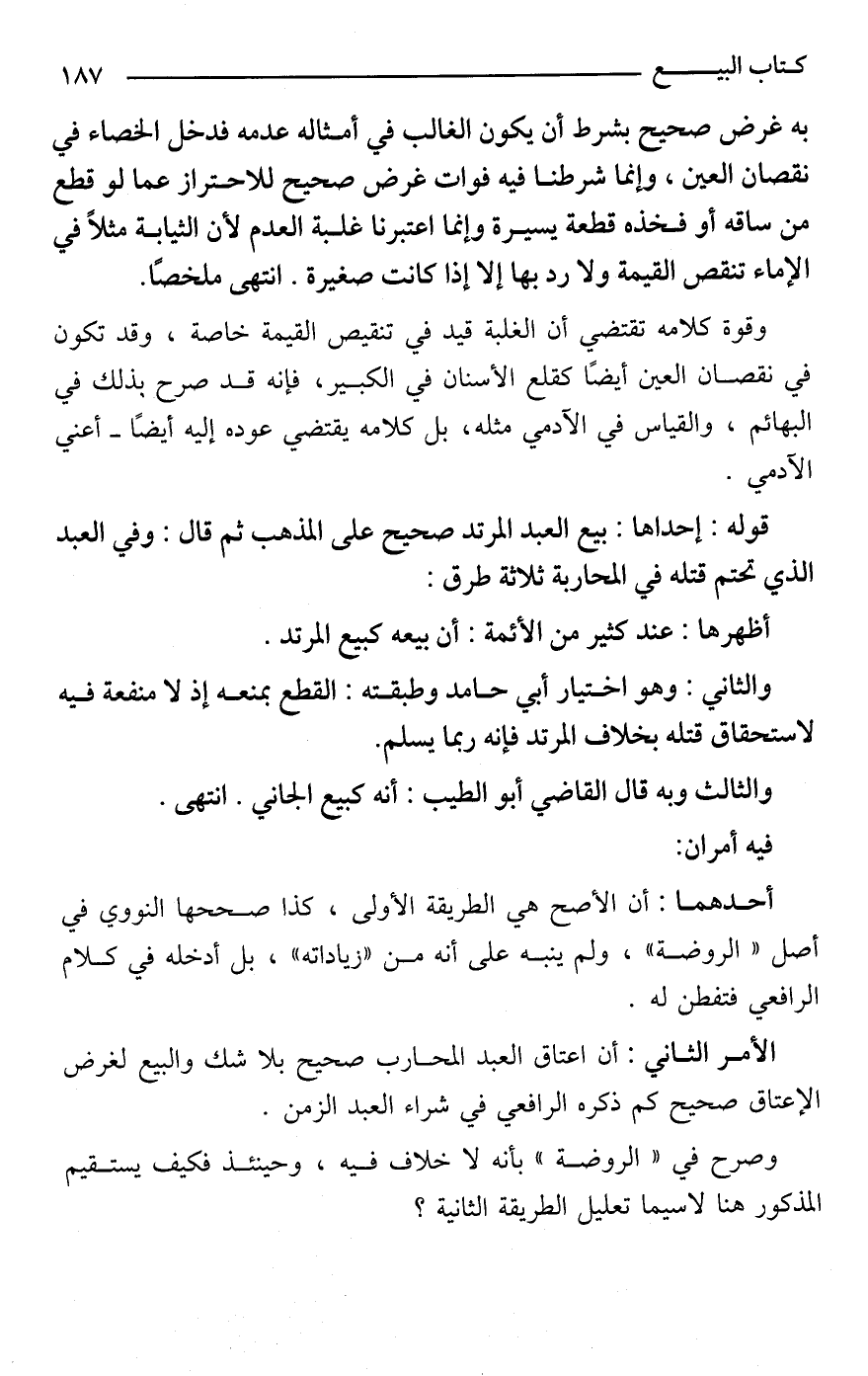 قوله: إحداها: بيع العبد المرتد صحيح على المذهب ثم قال: وفي العبد الذي تحتم قتله في المحاربة ثلاثة طرق:
