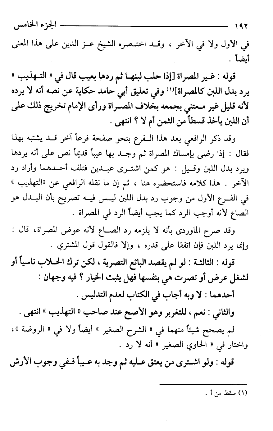 وقد ذكر الرافعي بعد هذا الفرع بنحو صفحة فرعًا آخر قد يشتبه بهذا فقال: إذا رضى بإمساك المصراة ثم وجد بها عيبًا قديمًا نص على أنه يردها ويرد بدل اللبن وقيل: هو كمن اشترى عبدين فتلف أحدهما وأراد رد الآخر. هذا كلامه فاستحضره هنا، ثم إن ما نقله الرافعي عن "التهذيب" في الفرع الأول من وجوب رد بدل اللبن ليس فيه تصريح بأن البدل هو الصاع لأنه أوجب الرد كما يجب أيضًا الرد في المصراة.