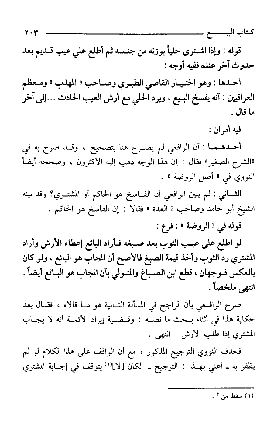 فحذف النووي الترجيح المذكور، مع أن الواقف على هذا الكلام لو لم يظفر به -أعني بهذا: الترجيح- لكان [لا] (¬1) يتوقف في إجابة المشتري