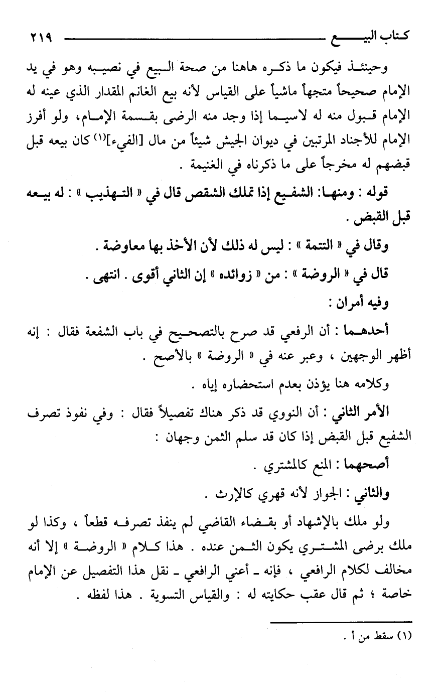 الأمر الثاني: أن النووي قد ذكر هناك تفصيلًا فقال: وفي نفوذ تصرف الشفيع قبل القبض إذا كان قد سلم الثمن وجهان: