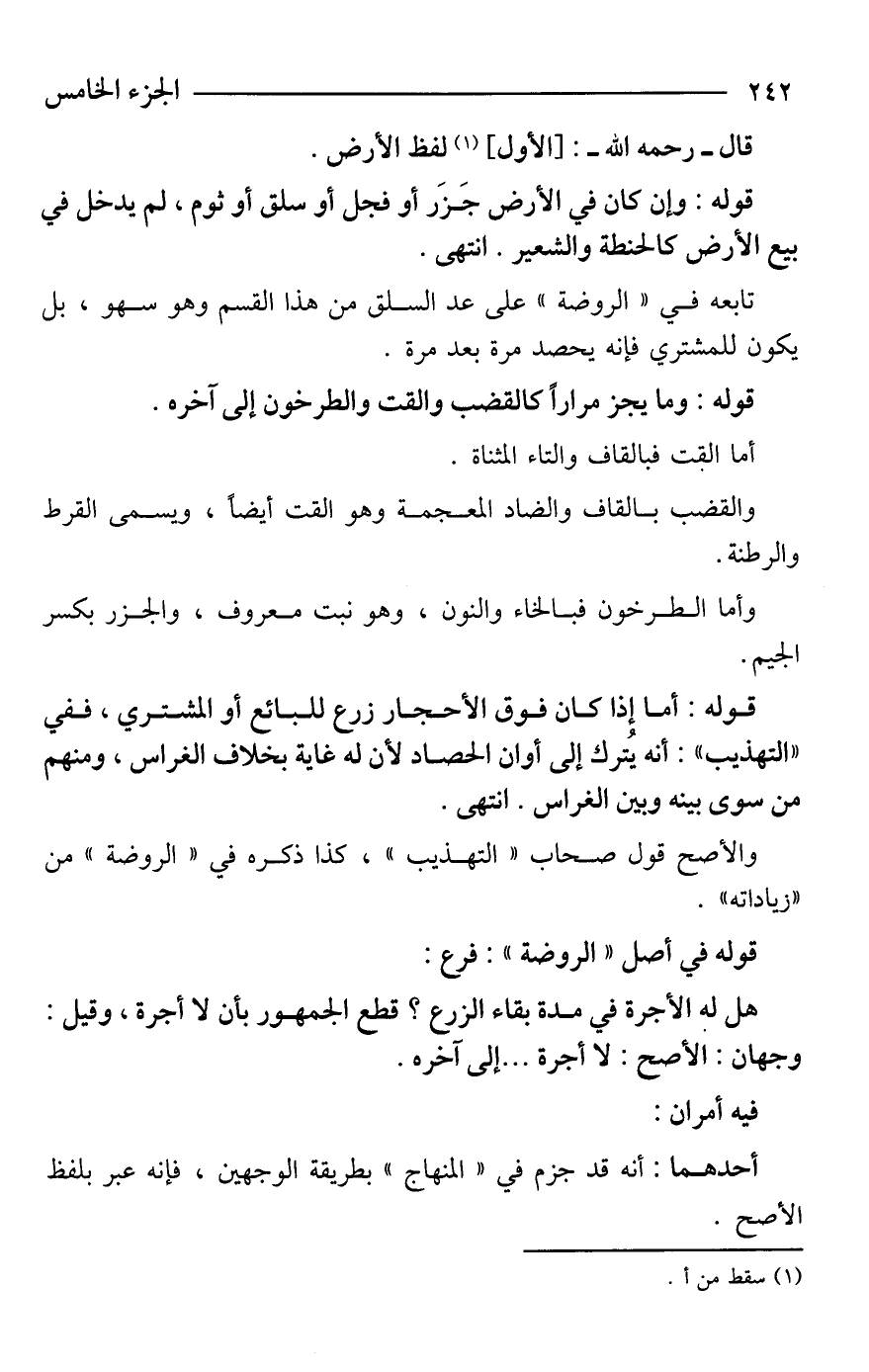 قوله: وإن كان في الأرض جَزَر أو فجل أو سلق أو ثوم، لم يدخل في بيع الأرض كالحنطة والشعير. انتهى.