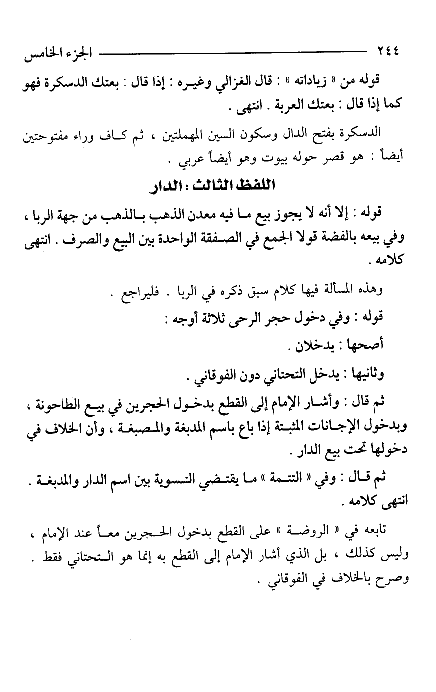 قوله من "زياداته": قال الغزالي وغيره: إذا قال: بعتك الدسكرة فهو كما إذا قال: بعتك العربة. انتهى.