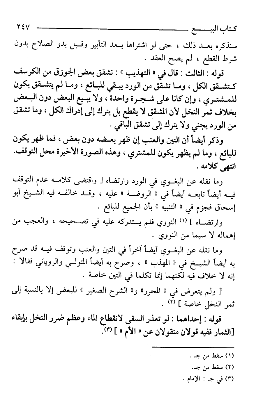 وما نقله عن البغوي في الورد وارتضاه [واقتضى كلامه عدم التوقف فيه أيضًا تابعه أيضًا في "الروضة" عليه، وقد خالفه فيه الشيخ أبو إسحاق فجزم في "التنبيه" بأن الجميع للبائع.