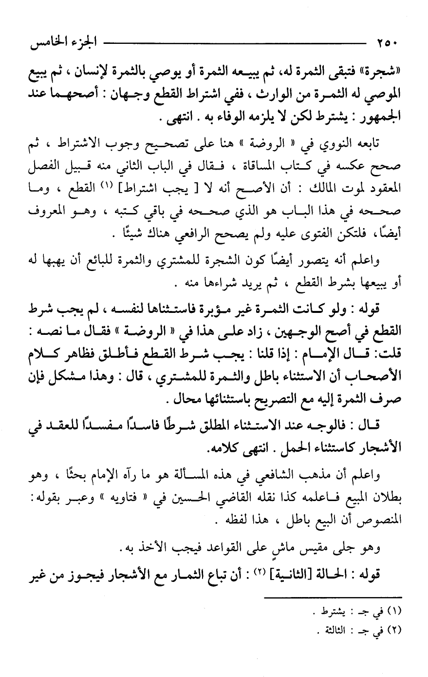 "شجرة" فتبقى الثمرة له، ثم يبيعه الثمرة أو يوصي بالثمرة لإنسان، ثم يبيع الموصي له الثمرة من الوارث، ففي اشتراط القطع وجهان: أصحهما عند الجمهور: يشترط لكن لا يلزمه الوفاء به. انتهى.