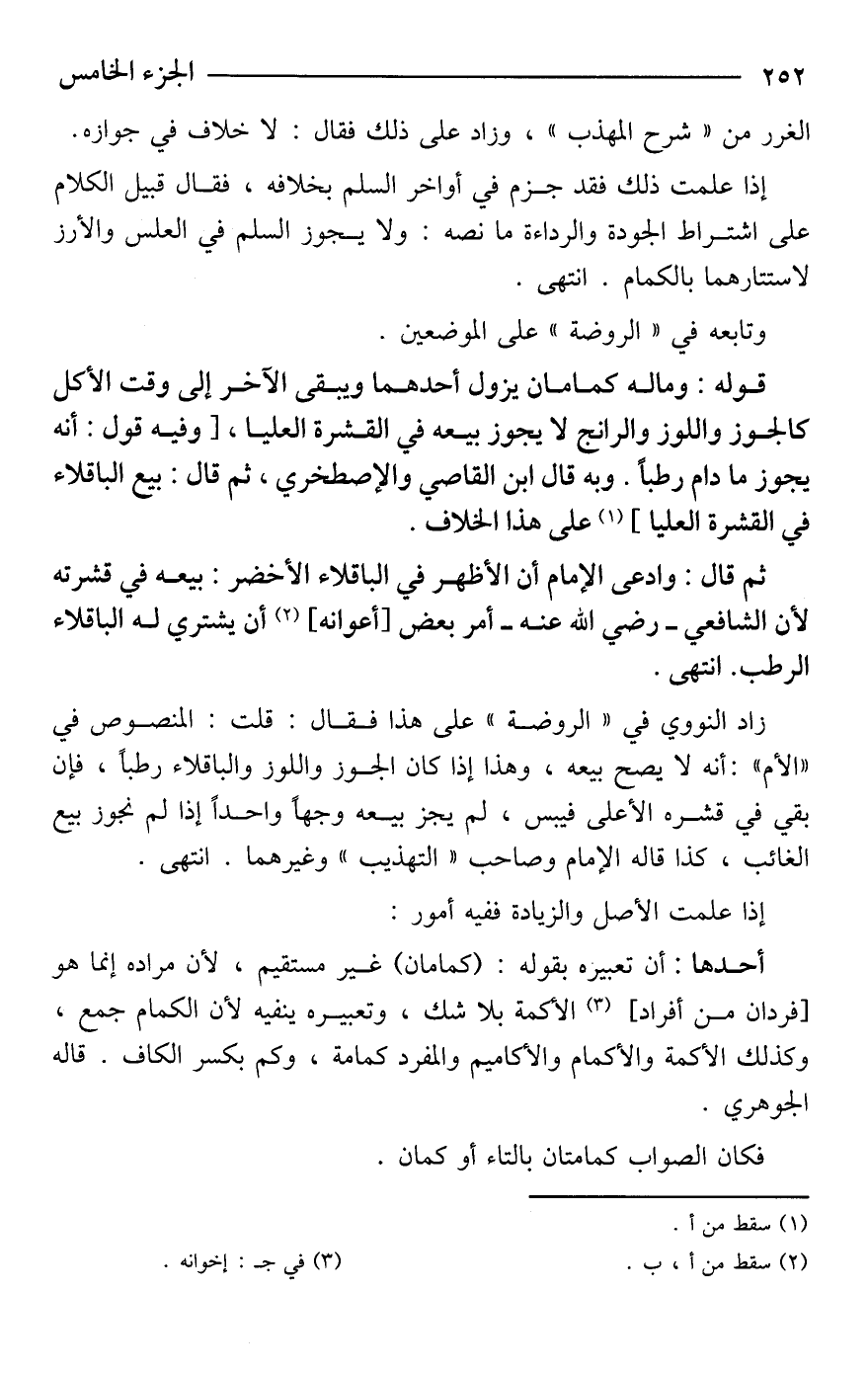 أحدها: أن تعبيره بقوله: (كمامان) غير مستقيم، لأن مراده إنما هو [فردان من أفراد] (¬3) الأكمة بلا شك، وتعبيره ينفيه لأن الكمام جمع، وكذلك الأكمة والأكمام والأكاميم والمفرد كمامة، وكم بكسر الكاف. قاله الجوهري.