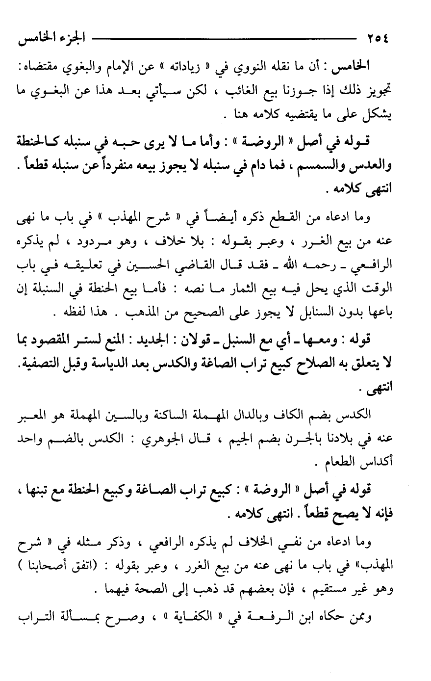 قوله في أصل "الروضة": وأما ما لا يرى حبه في سنبله كالحنطة والعدس والسمسم، فما دام في سنبله لا يجوز بيعه منفردًا عن سنبله قطعًا. انتهى كلامه.