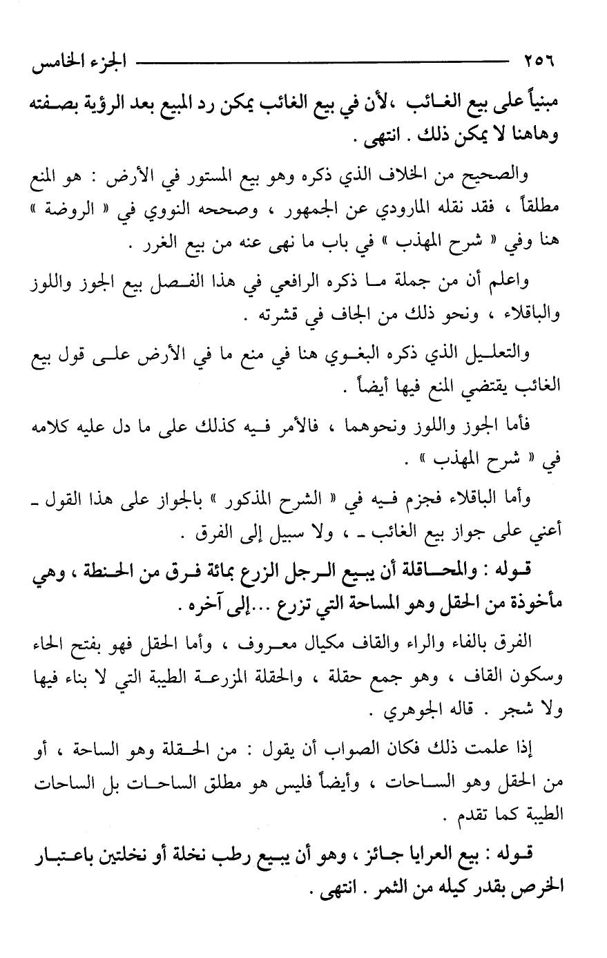 والتعليل الذي ذكره البغوي هنا في منع ما في الأرض على قول بيع الغائب يقتضي المنع فيها أيضًا.