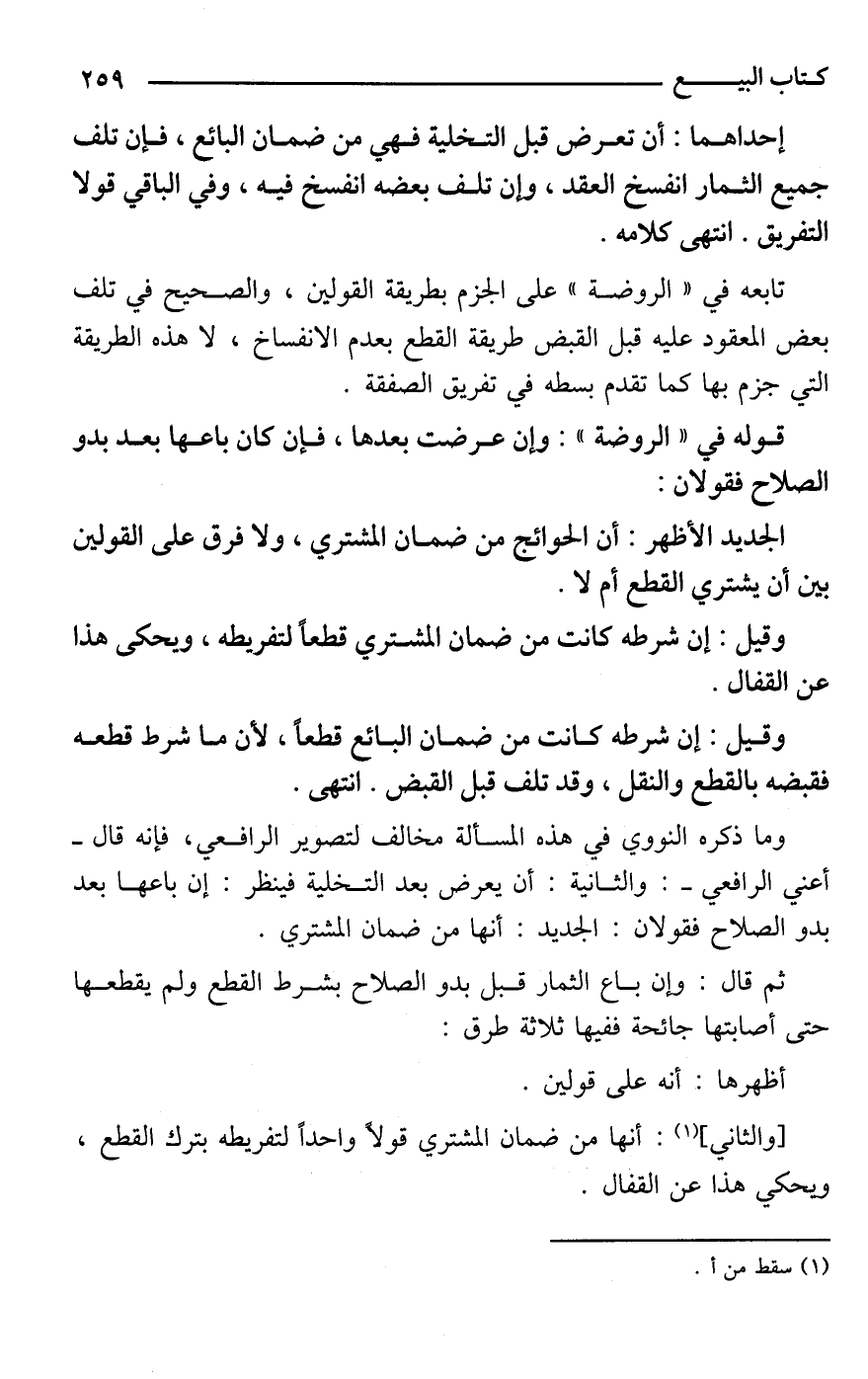 وما ذكره النووي في هذه المسألة مخالف لتصوير الرافعي، فإنه قال -أعني الرافعي-: والثانية: أن يعرض بعد التخلية فينظر: إن باعها بعد بدو الصلاح فقولان: الجديد: أنها من ضمان المشتري.