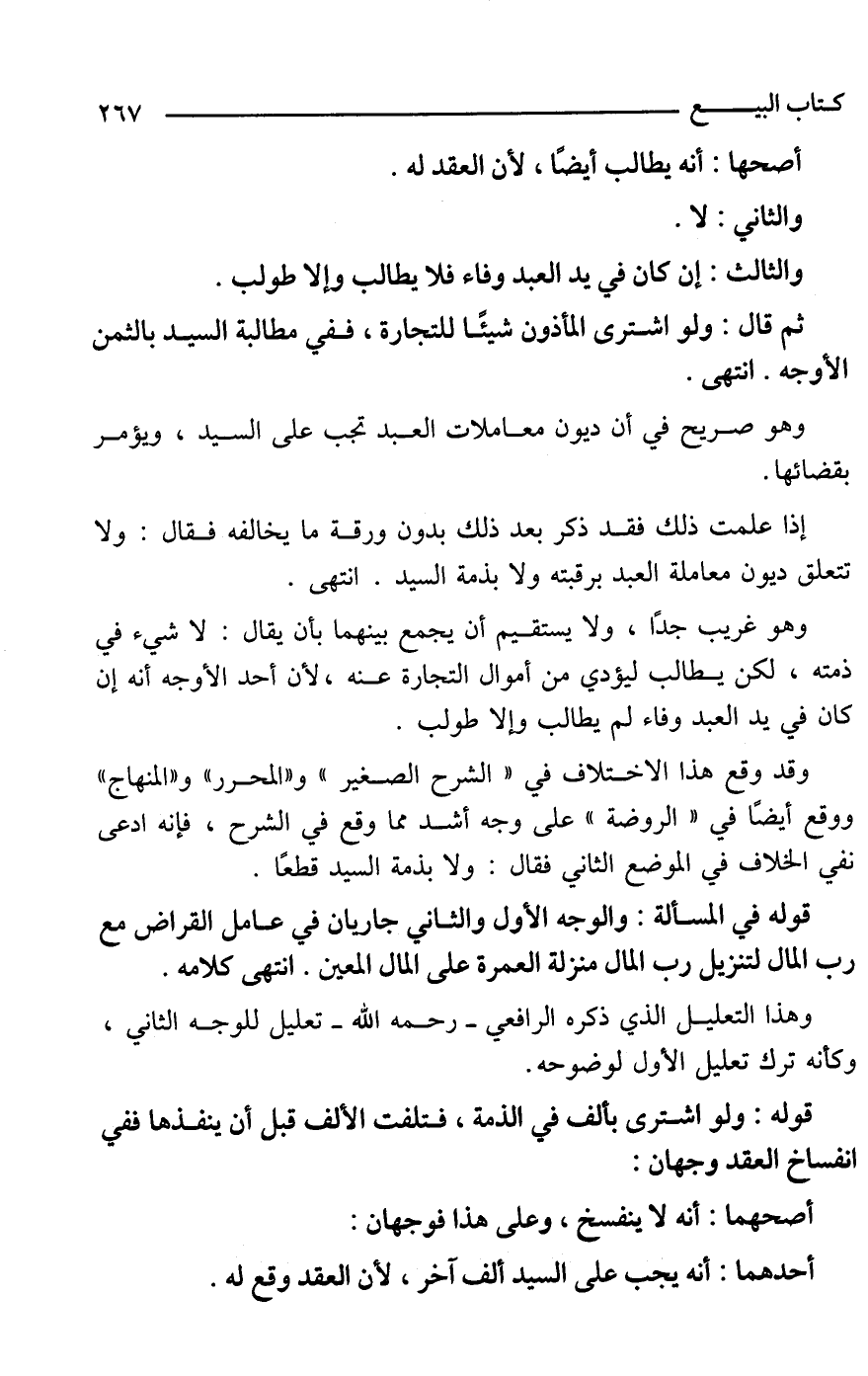 إذا علمت ذلك فقد ذكر بعد ذلك بدون ورقة ما يخالفه فقال: ولا تتعلق ديون معاملة العبد برقبته ولا بذمة السيد. انتهى.