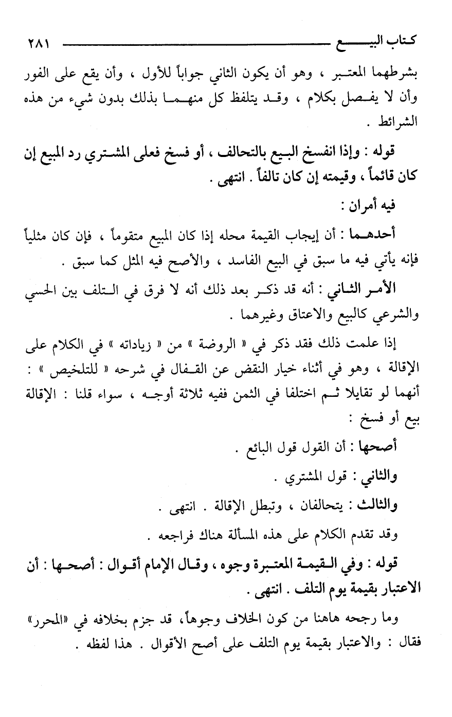 والثالث: يتحالفان، وتبطل الإقالة. انتهى.