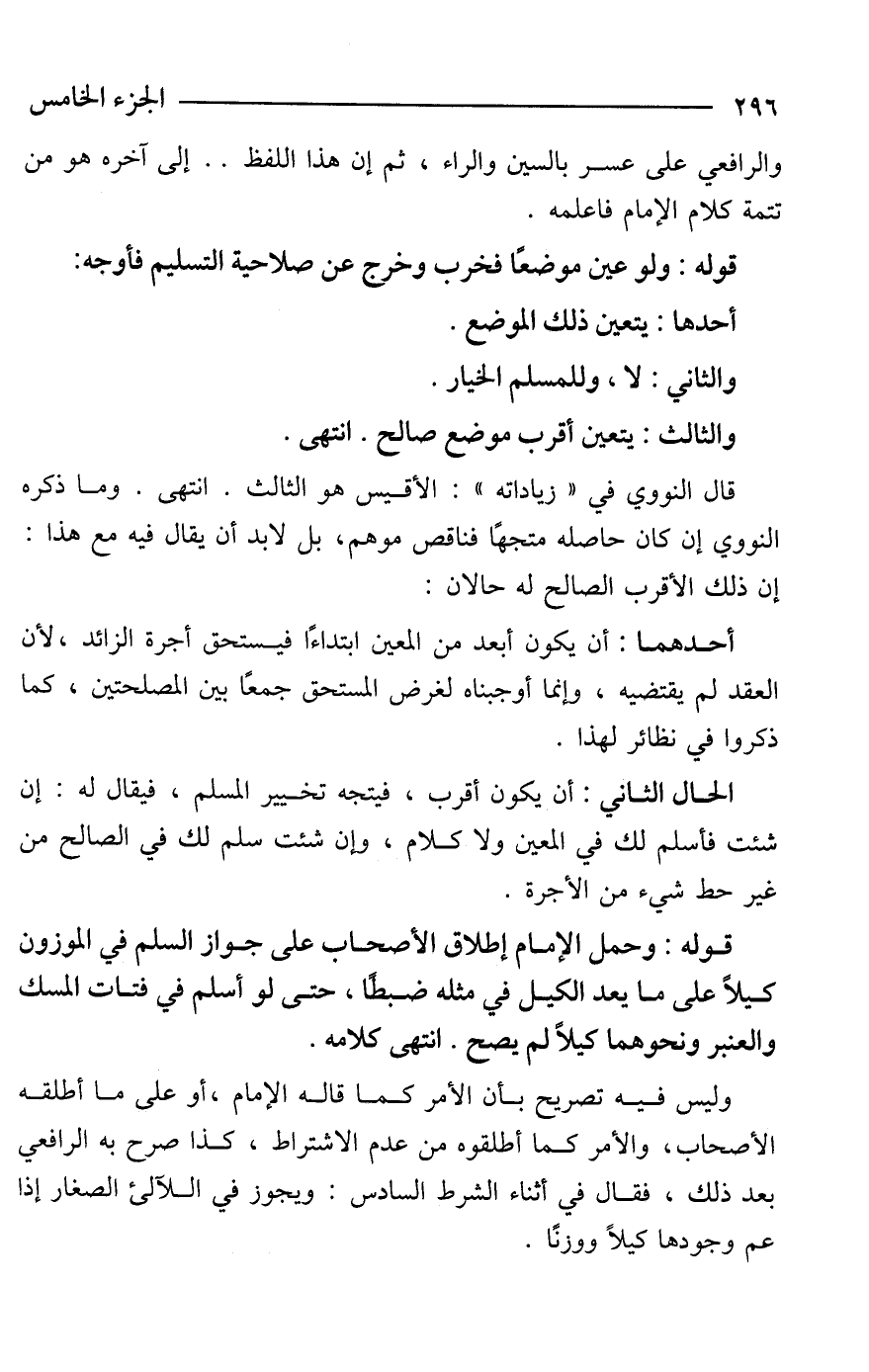 قوله: وحمل الإمام إطلاق الأصحاب على جواز السلم في الموزون كيلًا على ما يعد الكيل في مثله ضبطًا، حتى لو أسلم في فتات المسك والعنبر ونحوهما كيلًا لم يصح. انتهى كلامه.