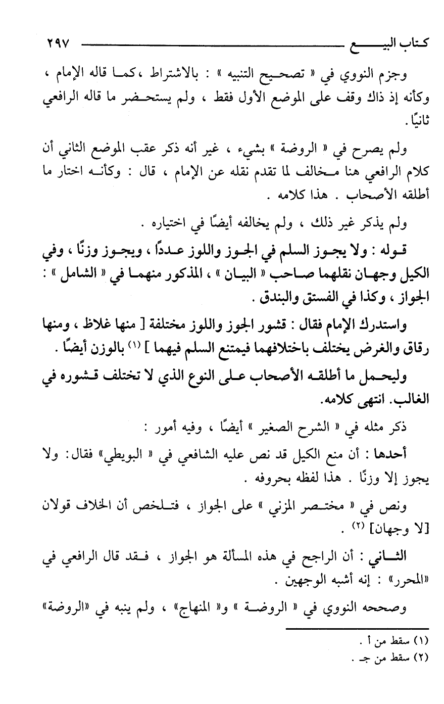 واستدرك الإمام فقال: قشور الجوز واللوز مختلفة [منها غلاظ، ومنها رقاق والغرض يختلف باختلافهما فيمتنع السلم فيهما] (¬1) بالوزن أيضًا.