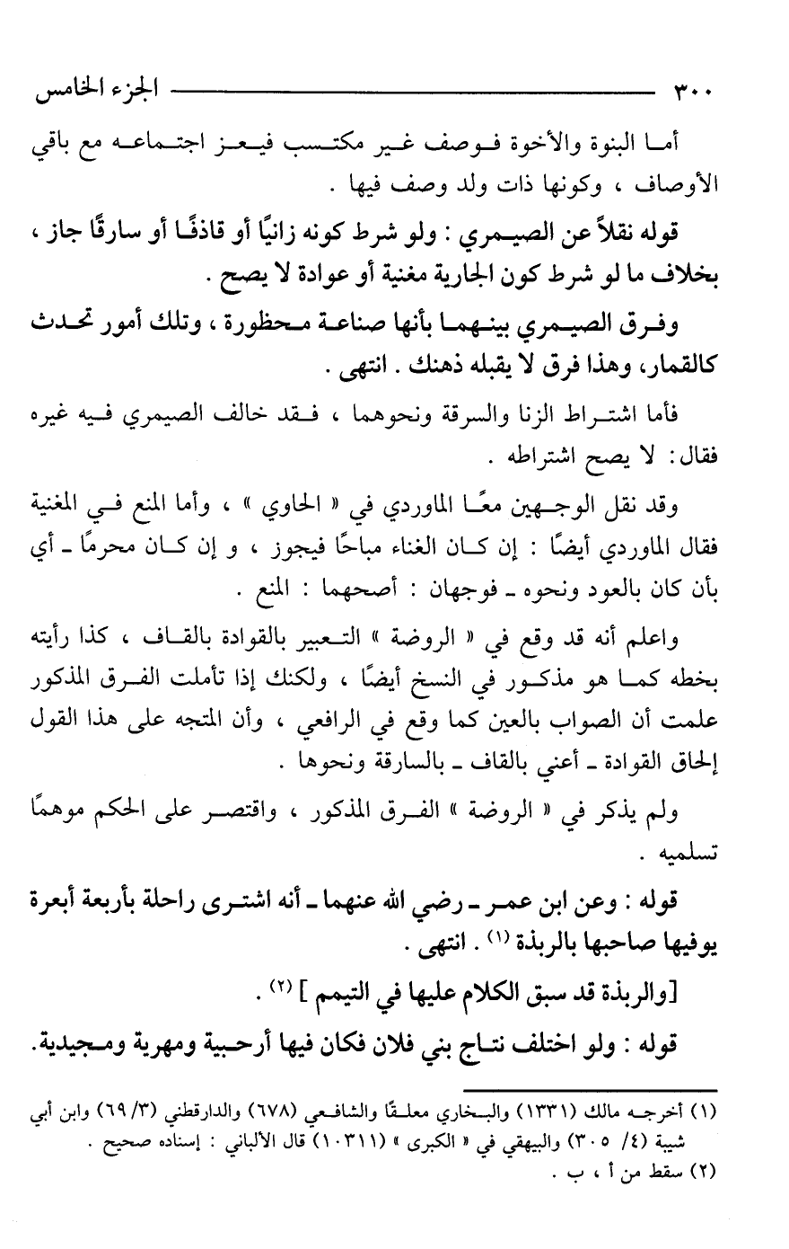 قوله نقلًا عن الصيمري: ولو شرط كونه زانيًا أو قاذفًا أو سارقًا جاز، بخلاف ما لو شرط كون الجارية مغنية أو عوادة لا يصح.