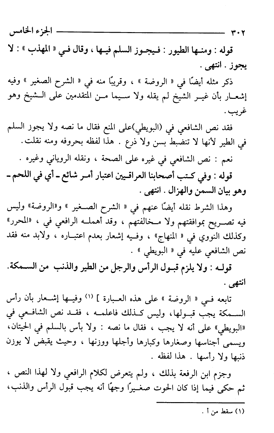 وجزم ابن الرفعة بذلك، ولم يتعرض لكلام الرافعي ولا لهذا النص، ثم حكى فيما إذا كان الحوت صغيرًا وجهًا أنه يجب قبول الرأس والذنب،