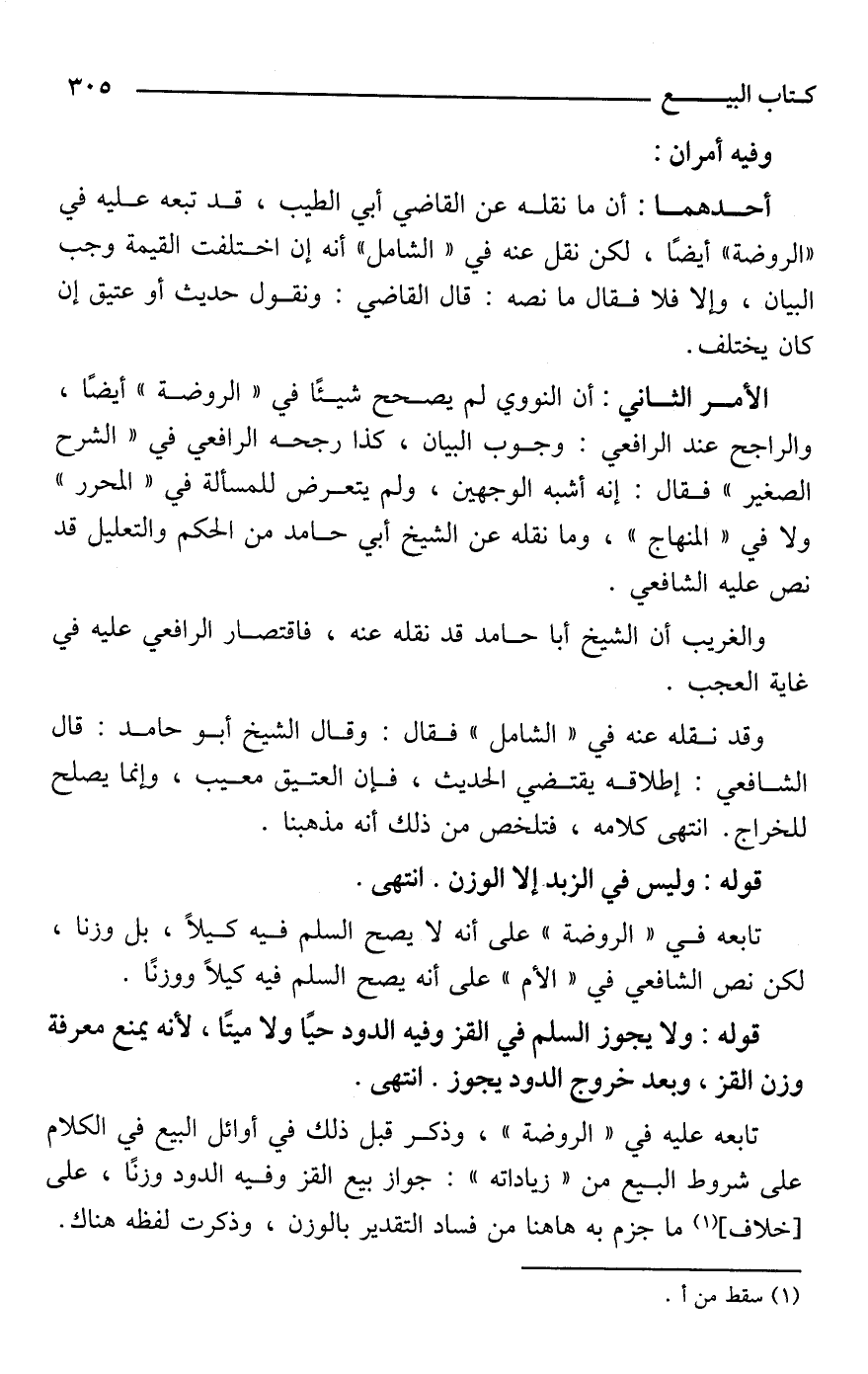 تابعه في "الروضة" على أنه لا يصح السلم فيه كيلًا، بل وزنا، لكن نص الشافعي في "الأم" على أنه يصح السلم فيه كيلًا ووزنًا.