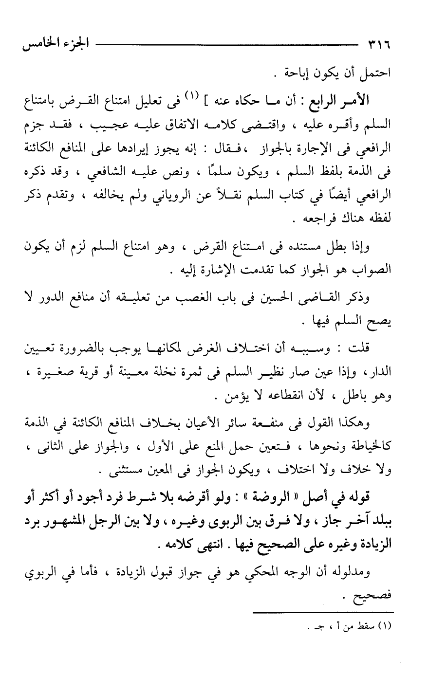 وإذا بطل مستنده فى امتناع القرض، وهو امتناع السلم لزم أن يكون الصواب هو الجواز كما تقدمت الإشارة إليه.