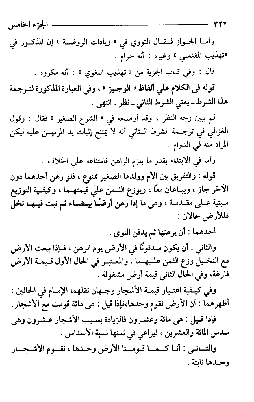 قوله فى الكلام علي ألفاظ "الوجيز"، وفي العبارة المذكورة لترجمة هذا الشرط -يعني الشرط الثاني- نظر. انتهى.